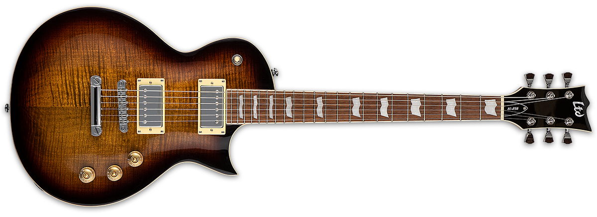 The EC-256FM is the perfect evidence that a great guitar doesn’t have to be prohibitively expensive. A classic shape that’s excellent for all musical styles and genres, the EC-256FM is available in multiple finishes and offers features that you normally associate with high-end guitars, like a flamed maple top, binding on the body, neck, and headstock, and set-neck construction for fast and easy access to the highest frets. The EC-256FM also features a mahogany body, a comfortable three-piece thin U-shaped mahogany neck, and a roasted jatoba fingerboard with inlays and 22 extra-jumbo frets. This guitar features our acclaimed ESP Designed LH-150 humbucking pickups that offer great tone for all genres of music, and the tone flexibility of coil-splitting controlled by a push-pull switch on the tone knob.