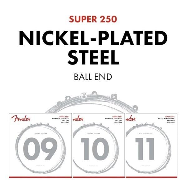 Fender super 250’s nickel-plated steel (nps) strings combine the high output and dynamic sound of steel with the smooth feel of nickel