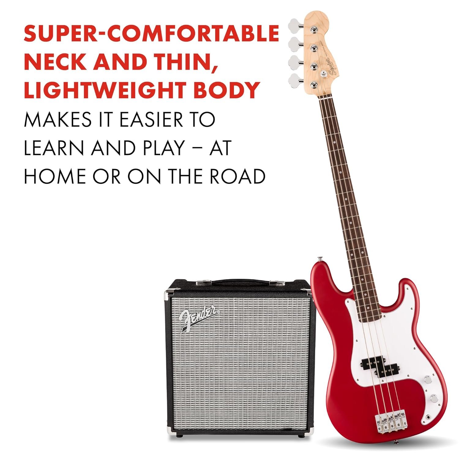 the Squier Debut collection features the iconic Fender Stratocaster and Precision Bass models with super-comfortable necks and thin, lightweight bodies for more comfort and playability. Available in classic Black, 2-Tone Sunburst and Dakota Red, the Debut Collection has the unmistakable sound and style of the brand played by more artists – on more stages – than any other. Start your journey with the most trusted name in guitar.