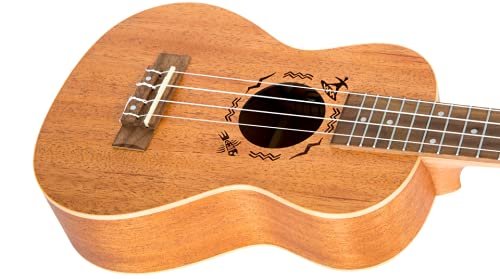 The Flight DUC 523 CEQ is a concert-sized ukulele. It features a solid mahogany top, paired with laminate mahogany back and sides, giving it a warm and resonant sound. The rosette features a surfer riding the waves, reminiscent of the history of the ukulele and its origins in Hawaii.
