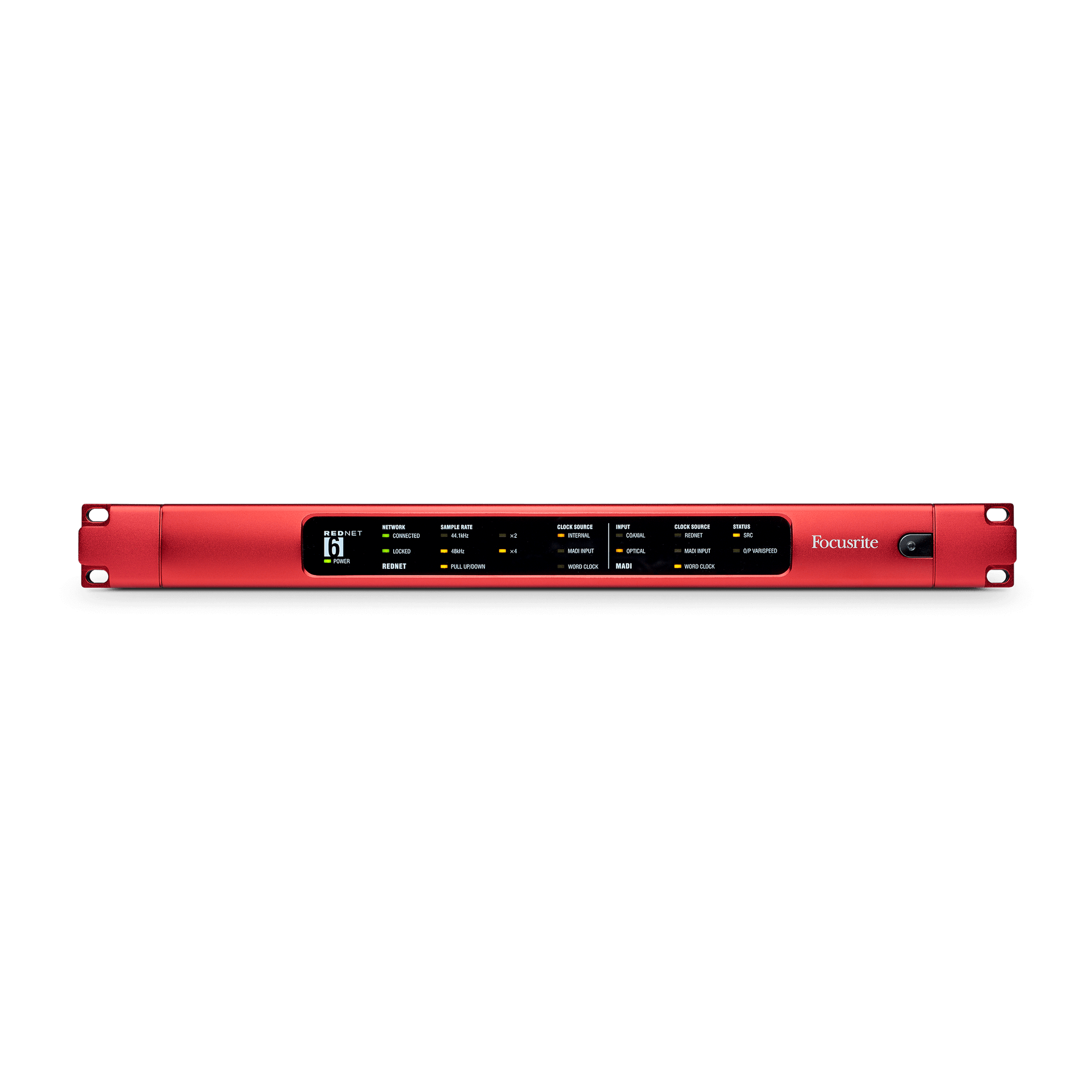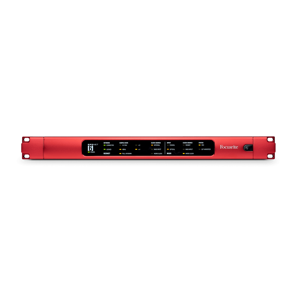 • Compact and effective — RedNet 6 is a simple 1U rack-mount module with the classic red aluminium faceplate.