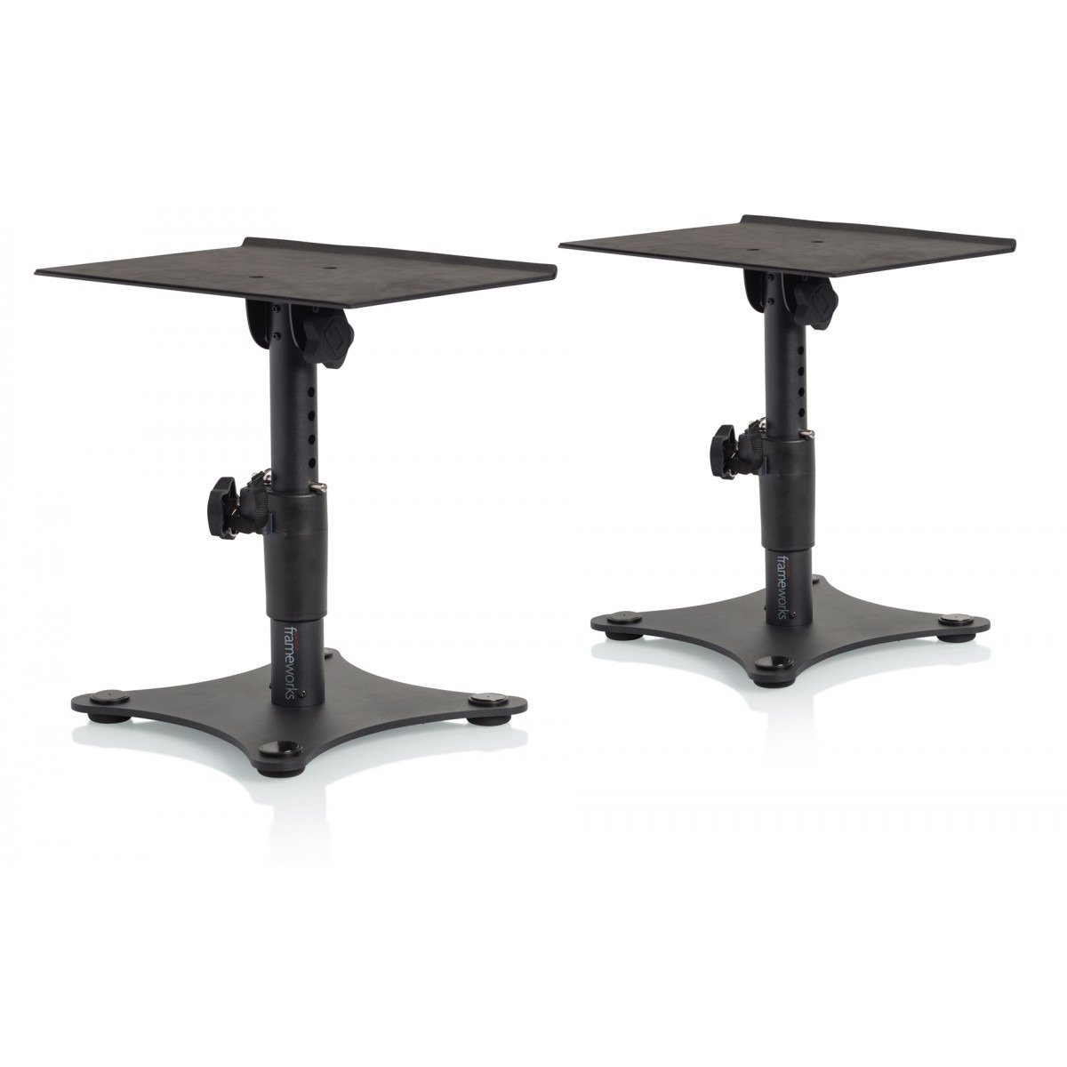 Enhance your studio setup with these sleek, black powder-coated clamp-on desktop monitor stands designed for both durability and modern appeal. Perfect for most small-sized studio monitors, they support both horizontal and vertical placement, keeping your workspace clean and professional. Their robust build ensures long-lasting performance, while their stylish look complements any studio environment. Whether you’re a beginner or a professional, these stands give you both the stability and aesthetic upgrade your studio deserves without compromising on sound quality or functionality.