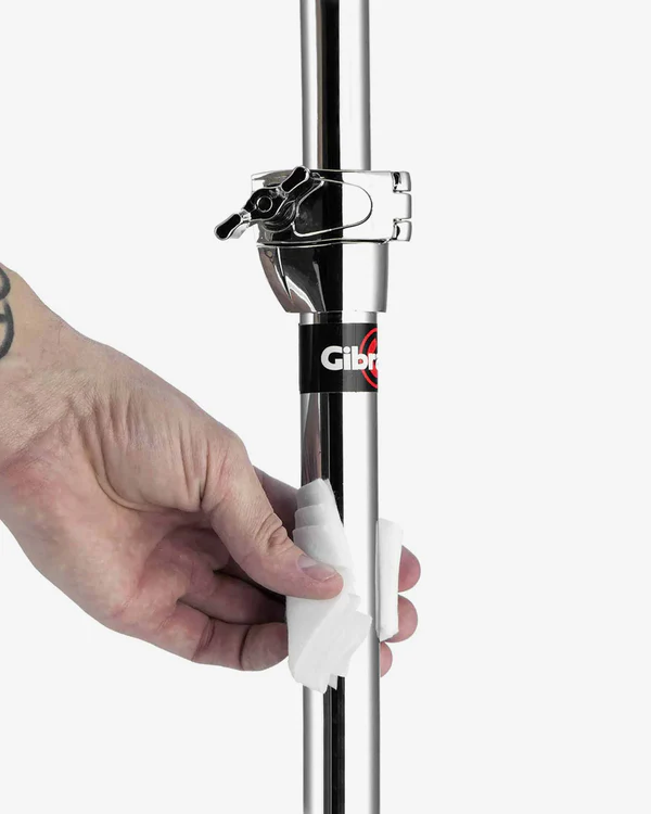 These disposable cleaning wipes are packaged individually to fit perfectly in your stick or cymbal bag pocket to clean and maintain your hardware’s original shine while out and about. Quickly remove oil, dirt, and grime from unavoidable fingerprints and general use of gear. Designed to work on all chrome surfaces, a microfiber cloth is included to assist in cleaning.