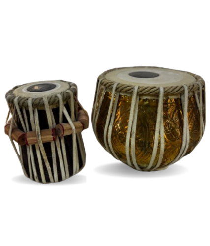 Enhance your musical experience with this Golden Engraved Brass Tabla Set, designed for rich sound and a premium look. The beautifully engraved golden finish adds a traditional and elegant touch, making it perfect for both practice and performances.