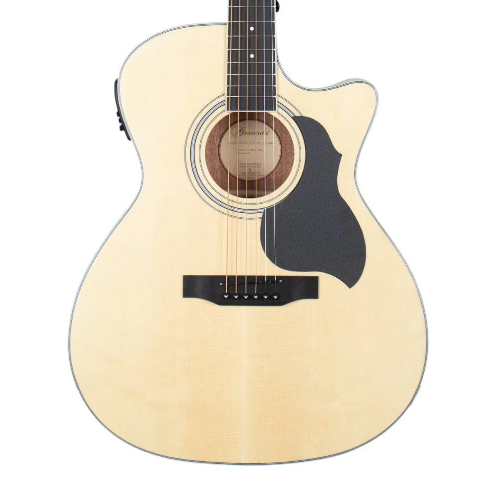Features : 40″ is a Grand Concert-shaped guitar with a Cutaway Laminate Spruce top Okume back and sides Well-rounded sound with a well-articulated high-end and tight low-end Black diecast tuners Granada MS-4T EQ Specifications: Country of Manufacture: China Warranty: 3 Years Body Shape: Grand Concert Cutaway Cutaway: Yes Top Material: Spruce Laminate Back Wood: Okume Laminate Sides: Okume Laminate Length: 40″ Scale length: 650 mm Binding: ABS Rosette: Decal Logo: Laser Bridge: Composite Rosewood Tuners: Die Cast Black Fingerboard: Composite Rosewood Nut: ABS Black String: Local EQ: Granada MS-4T Finish: Matte Color: Natural