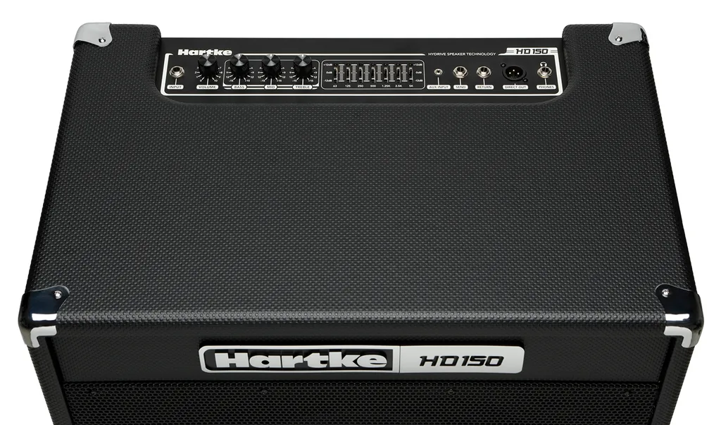 Packed with professional features, the HD150 combo is designed to be easy to use and reliable for players of all levels. The combo offers volume, bass, mid, and treble controls on its top-mounted amp panel, as well as a 7-band graphic EQ for easy tweaking. It features a full effects loop, as well as a 1/8″ stereo auxiliary input for playing along with your favorite tunes via an MP3 player, and a 1⁄4″ headphone output for more intimate practice sessions. The HD150 also features an XLR direct output for routing your signal to a mixer in both live and studio settings. In addition, the HD150 has a built-in limiter to keep the amp running at safe levels. Finally, its rugged enclosure is stylishly finished with a sleek perforated metal grille, side carry handles and casters. With the exceptional sound of HyDrive speakers in a durable, highly portable enclosure, the Hartke HD150 bass combo is able to perform at levels far beyond ordinary bass combos.