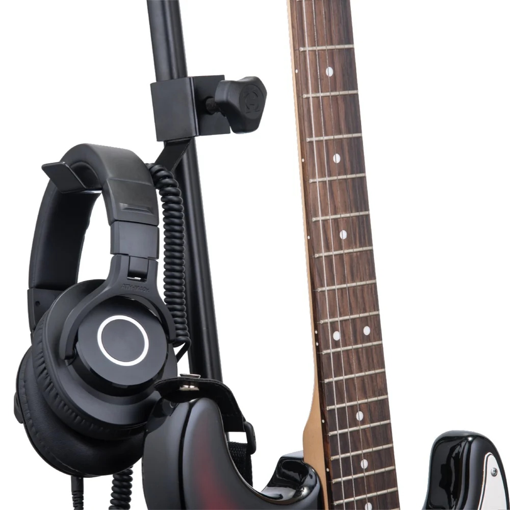 Hercules HA700 Guitar Strap and Headphone Holder Overview: The HERCULES Guitar Strap and Headphone Holder HA700 keeps audio cables untangled and organized, accommodates all Hercules Guitar Stands, Microphone Stands, Orchestra Stands. Features: Reduce the risk of tripping over straps on the stage floor. The holder can firmly take headphones weighed under 2 kg. (4.4 lbs.) Lightweight and handy, a useful addition for stage, studio, and home.