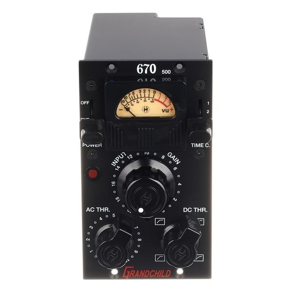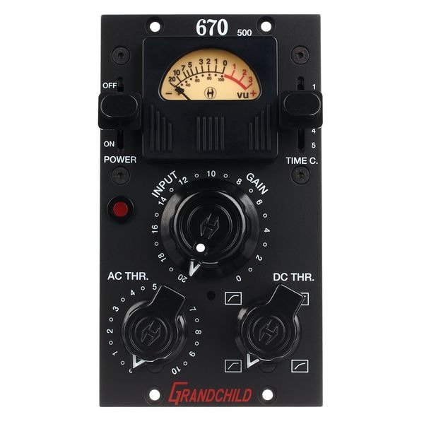 Ideal for tracking, mixing, and mastering, the Heritage Audio Grandchild 670 delivers outstanding sonics, performance, and versatility. The buttery-smooth sound of the vocals and instruments through the Grandchild 670 is an inherent sonic attribute of “Vari-MU” dynamics control, which exhibits a gentle, soft-knee compression curve with fast attack and fairly long release times, selectable as time constants via a 5-position lever switch. It’s also program dependent, so gain reduction starts at a very low ratio on small peaks and gradually increases to brickwall limiting on very loud input signals. On the original, the DC Threshold is adjusted via an internal trimpot; the Heritage Grandchild and Herchild units bring the powerful DC Threshold control out to the front panel for immediate access. This allows for continuously variable slope adjustment over a wide range, from a seamless transition between compression and limiting to a harder, more pronounced knee. The compression ratio is dependent on the amount of limiting as well as the settings of the continuously variable AC threshold control.