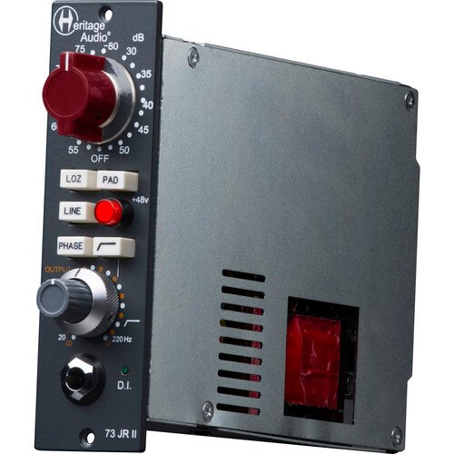 The Heritage Audio 73JR II 500 Series microphone preamplifier brings a huge dose of vintage vibe straight to your rack. Based on the iconic console preamp module, it amplifies any microphone or instrument clearly and vibrantly. Plus, since there are separate input and output gain controls, you can drive the 73JR II’s input to get rich, saturated sound like you would on a vintage British console. Factor in an incredible 80dB of gain, and you’ve got a preamp that’s ready to bring out the best in any microphone, whether condenser, dynamic, or ribbon. Additionally, the 73JR II updates the original 73JR design with a variable highpass filter, giving you more control for cutting unwanted low-frequency information while tracking, and an auto-switching DI mode that imparts your instrument signals with console-style character — two awesome additions that make this Suhavimart-favorite 500 series preamp even better!