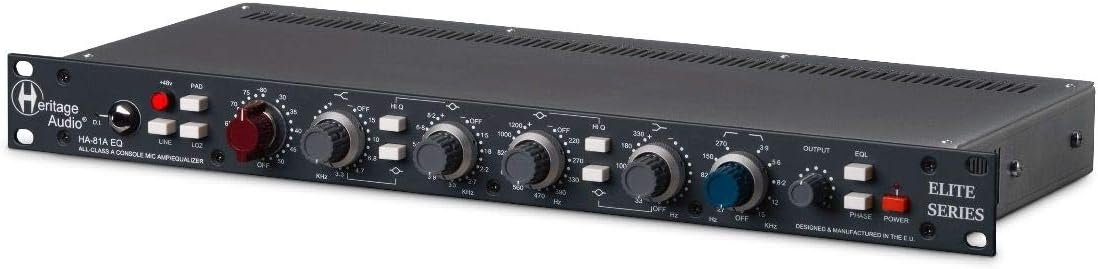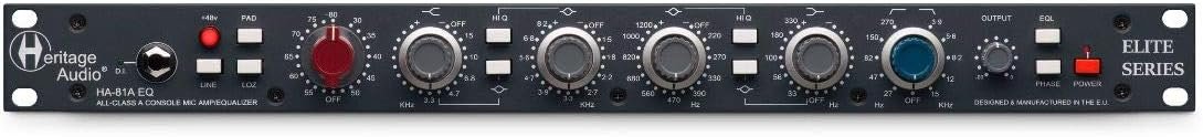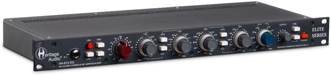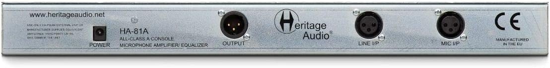 Definitive British-Spec Channel Strip The Heritage Audio HA-81A gives you what generations of recording engineers have lusted after. The legendary 1073 console module wrote the book on characterful microphone preamplification, but arriving as it did in the early ’70s, it was paired with a three-band equalizer that sounded incredible, but left something to be desired in terms of flexibility. Then the mighty 1081 EQ arrived with four overlapping bands and under-the-bonnet enhancements that made it sound better than ever. It still possessed the ability to transform iron-poor sources into powerhouse tracks, plus it offered the surgical precision its predecessor did not. Now, the Heritage Audio HA-81A packs the best of the best: an all-discrete, Class A 73-style mic preamp and a powerful 81-style EQ, all in a tidy 1U rackmount chassis decked out in classic RAF gray livery.The preamp by which all others are measured Heritage Audio’s take on the