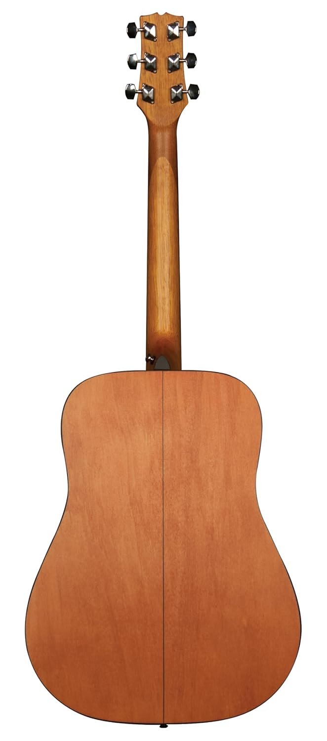 The Jasmine S35 is a great looking dreadnought guitar with a big, bold sound and excellent features that represent exceptional value. Great for any player seeking a well built and easy playing guitar, the S35 features a Sitka spruce top with Jasmine’s advanced “X” bracing, and mahogany back and sides. The slim neck and full 25.5″ scale length provide a comfortable feel and excellent playability, and the smooth satin finish maximizes resonance for optimal sound quality. Other great features include a rosewood fingerboard and bridge, full body binding and chrome tuners.