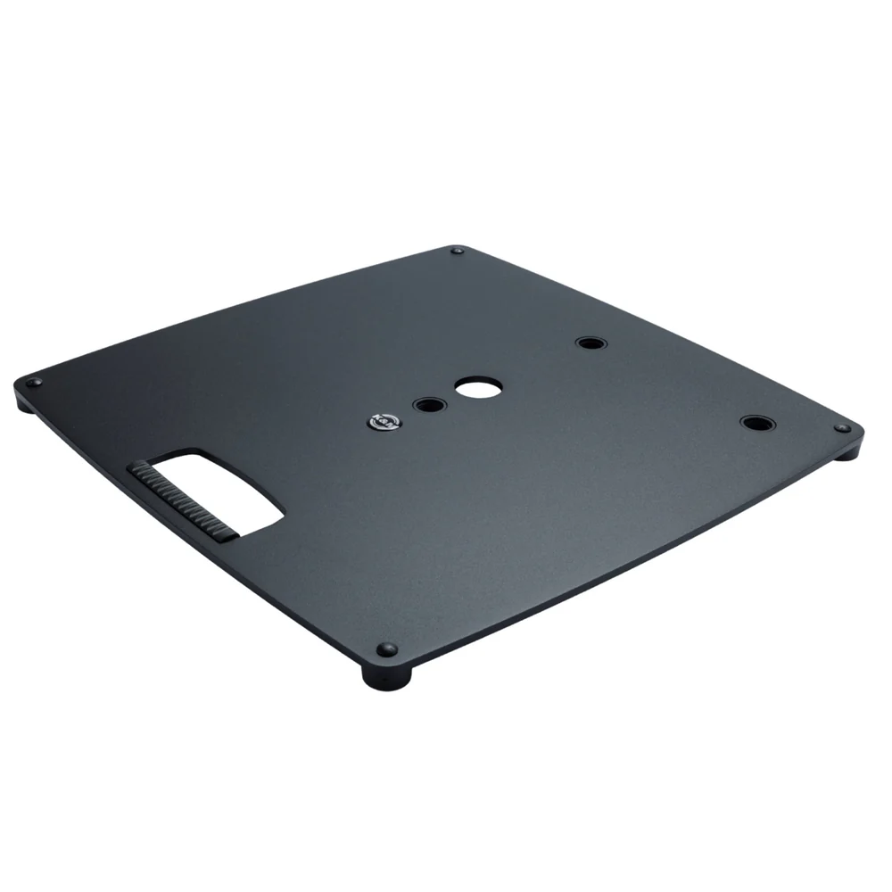 Special features: flat steel plate; includes a practical integrated handle and a cable management; depending on the requirements, there are three ways to position the distance rod Specifications: Dimensions: 489 x 489 x 23 mm Weight: 10.7 kg Material: steel Threaded connector: M20 Type: structured black