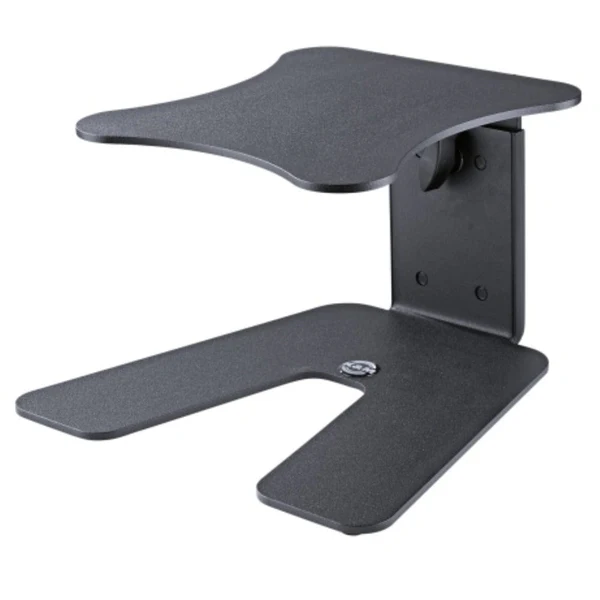 Konig & Meyer 26774 000 56 Monitor Table Stand – Black Overview: Attractive table stand for studio monitors and loudspeakers. The height adjustment is variable between 167 and 254 mm. 4 rubber pads each for floor and tray provide for stability and noise filtration. The recommended max. load is 15 kg. The support area (tray) dimensions are 230 x 250 mm.