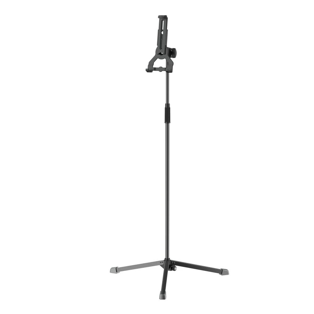 Konig & Meyer Biobased Tablet PC Stand – Black Overview: The combination of tablet PC stand holder and foldable stand for use at home, in the studio or on stage. The tablet holder is made of bio-based plastic. These plastics contain a proportion of over 50% up to 100% of renewable vegetable raw materials.