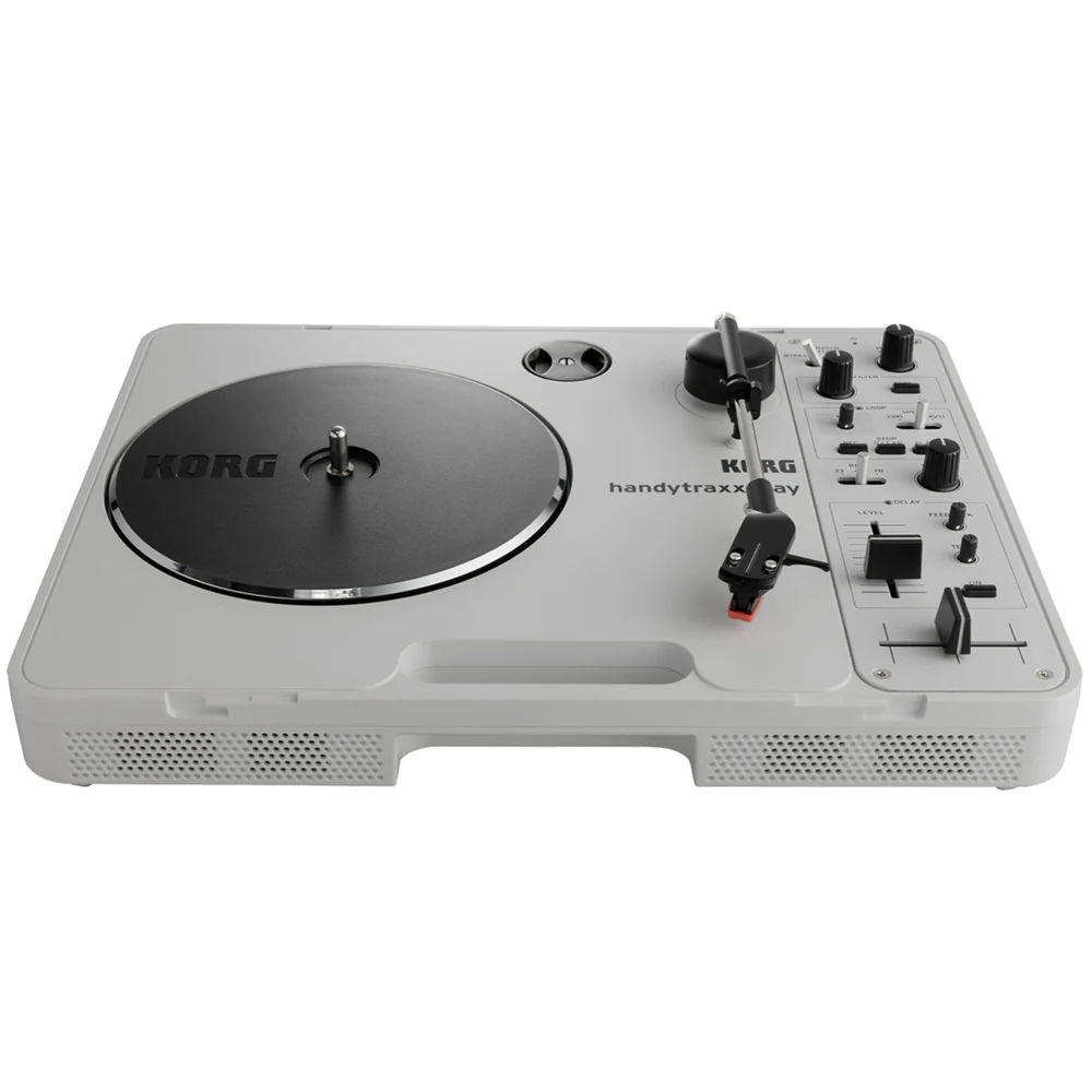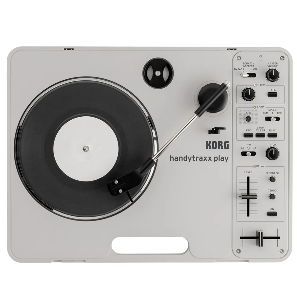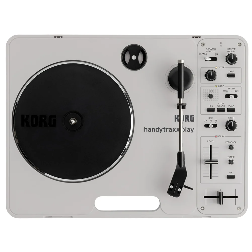 Now, Korg proudly reinvents this iconic turntable with the handytraxx play. Developed in collaboration with Toshihide Nakama, former President of Vestax and co-creator of the Handy Trax, the handytraxx play retains the essence of the original while introducing exciting new features. These include cutting-edge digital effects, a built-in looper, and high-quality controls that make it possible to physically “play” with records on the go.