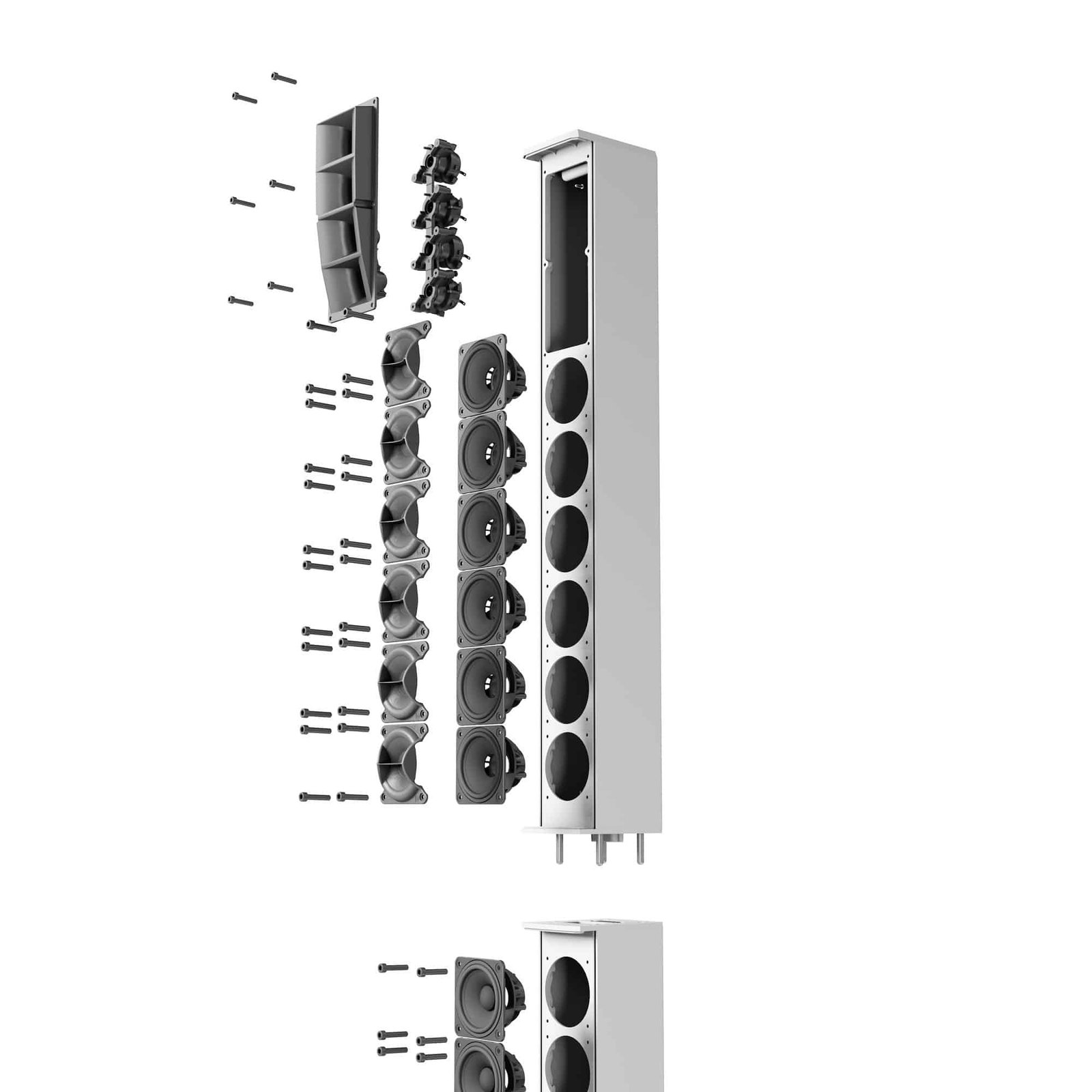The LD Systems MAUI® 44 G2 W is the flagship of the MAUI series column PAs: it offers an enormous 1,500 watts of total output (RMS) with a frequency response of 37 Hz to 20 kHz and a sound-level pressure of 132 dB (peak). With its outstanding sound properties and wide-ranging functions, this compact column PA is perfect for rental companies, musicians, small clubs, street festivals and permanent installations. The cardioid properties of the column elements and the possibility of creating a cardioid bass with an additional subwoofer further highlights the professional nature of this sound system. The column achieves a rear attenuation of 18 dB, the subwoofer 15 dB. The MAUI® 44 G2 W also sets the tone when the two-part column is equipped with twelve 3.5″ neodymium full-range speakers and four 1″ HF drivers with waveguide. The phase plugs on the six upper drivers improve horizontal directivity, reduce distortion and optimise the sensitivity below the crossover frequency for the tweeters. In addition, the four tweeters feature specially designed and optimised compression drivers coupled to a constant directivity waveguide to provide 120° of coverage across the width and 25° of focused vertical directivity. The curved design of the waveguide transports more energy in the high frequencies to listeners standing further away.
