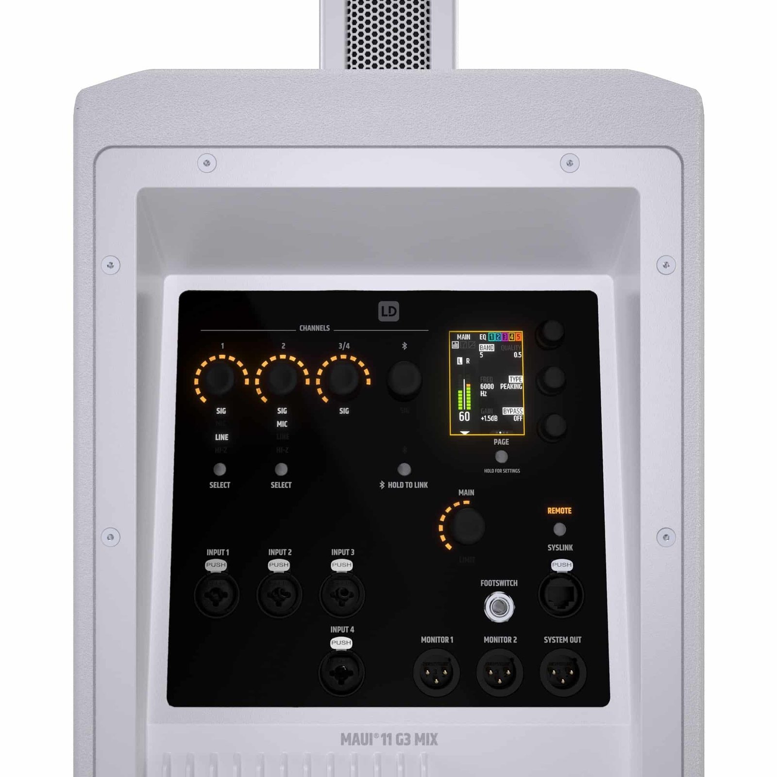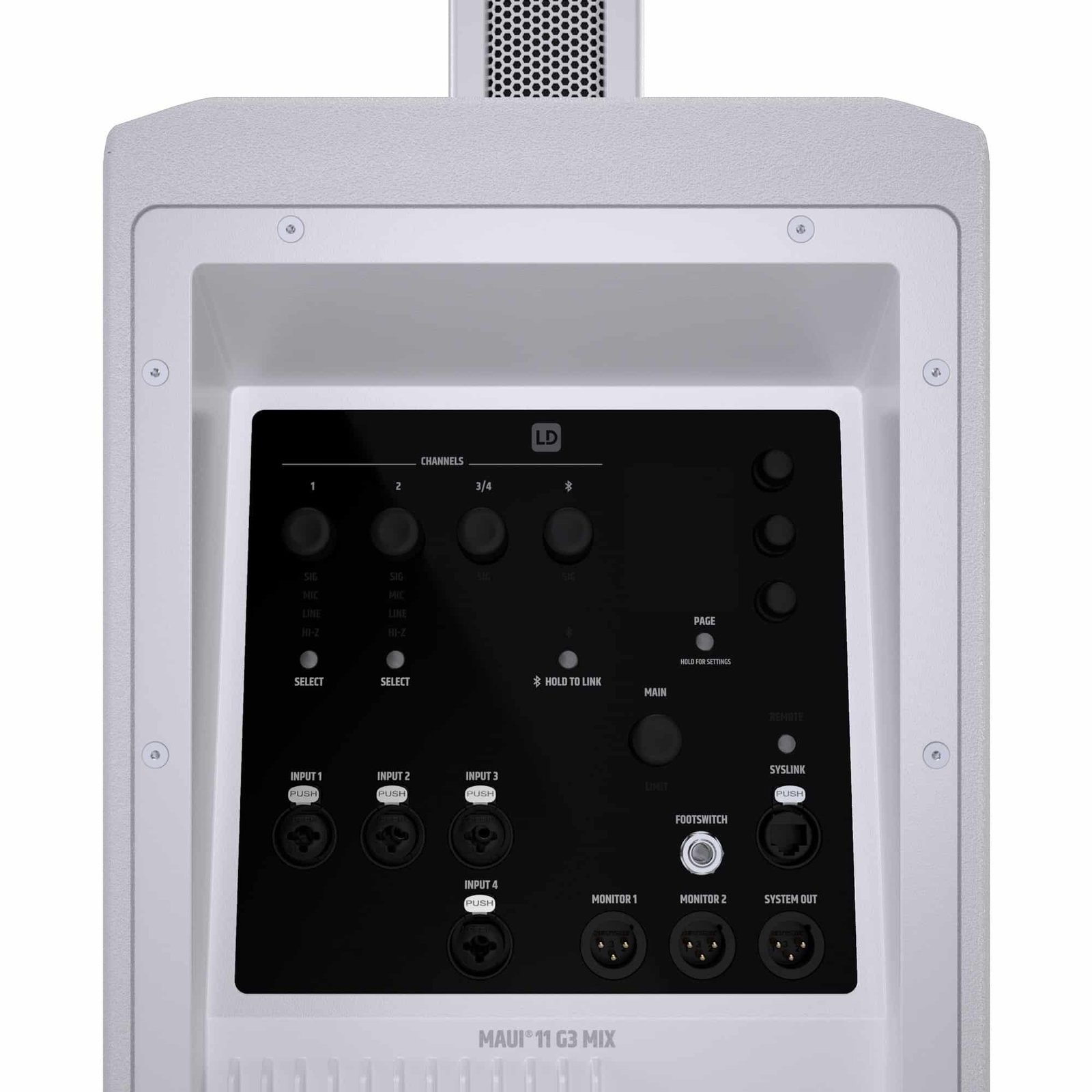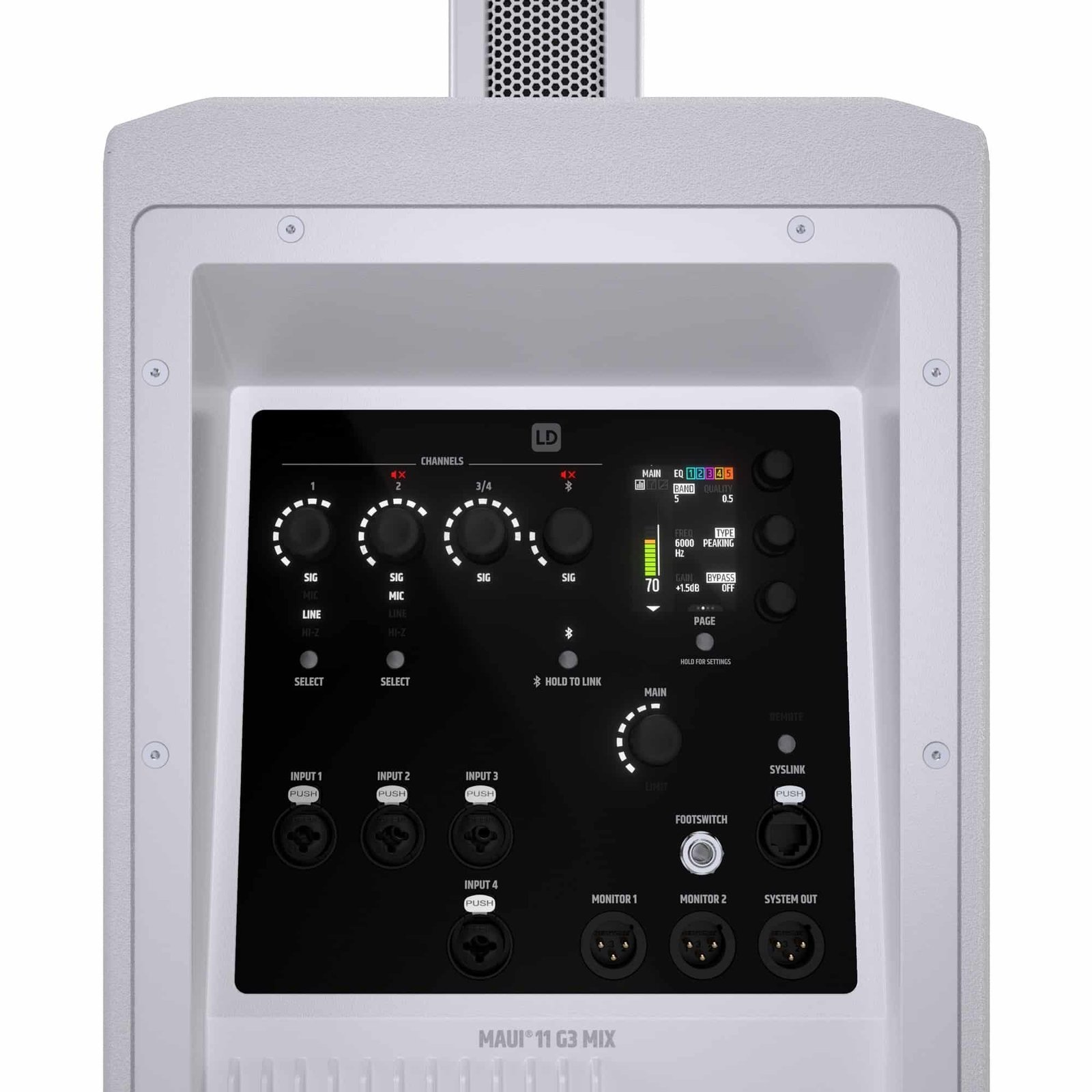 LD System Portable cardioid column PA system, white, with 6ch digital mixer & app control