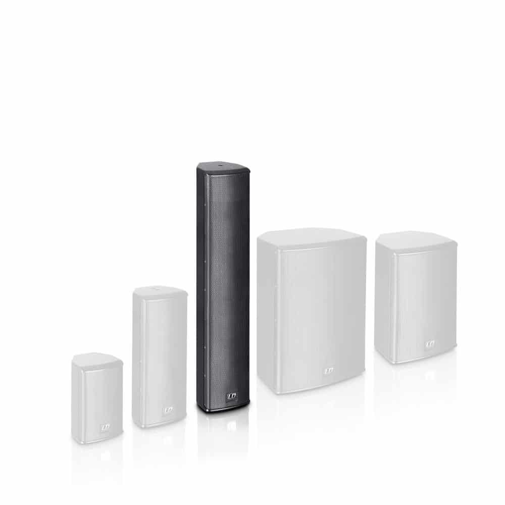 The elegant column design of the SAT442G² achieves a smooth balanced 120° horizontal dispersion with a focused 30° vertical directivity and a maximum sound pressure of 114 db. Four 4″ custom-made woofers and a 1″ compression driver from Celestion provide a balanced playback with a frequency response of 75 Hz to 20 kHz; spring terminals are used as connection. For a powerful, deep bass extension, we recommend the subwoofer installation series from LD Systems.