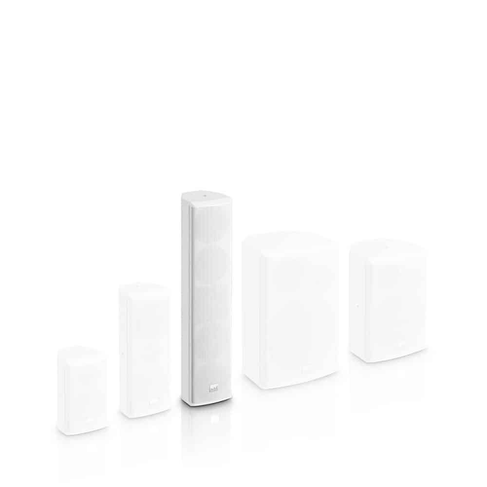 The elegant column design of the SAT442G² achieves a smooth balanced 120° horizontal dispersion with a focused 30° vertical directivity and a maximum sound pressure of 114 db. Four 4″ custom-made woofers and a 1″ compression driver from Celestion provide a balanced playback with a frequency response of 75 Hz to 20 kHz; spring terminals are used as connection. For a powerful, deep bass extension, we recommend the subwoofer installation series from LD Systems.