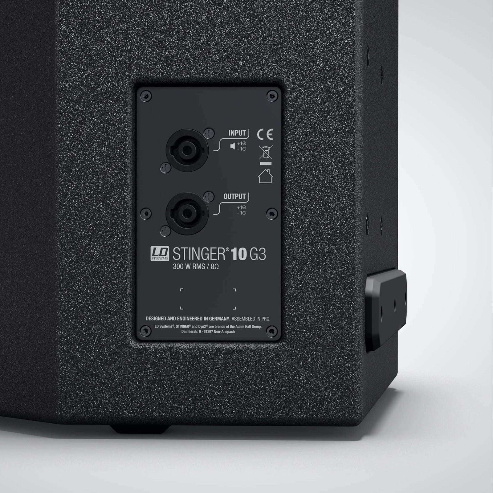 This highly professional 2-way loudspeaker is designed for absolute, long-term reliability. With its multifunctional bass reflex cabinet as a full range speaker, satellite and ground monitor, it is suited to mobile and fixed PA systems. The STINGER® 10 G3 provides 300 watts of continuous power; the maximum sound pressure level is 120 dB. Its specially developed 10″ woofer and the BMS HF driver achieve a powerful bass reproduction and fresh natural highs. The wave guide of the tweeter has been developed using the Boundary Element Method (BEM), a numerical simulation of the sound radiation and dispersion. It reduces reflections from the floor and ceiling and prevents sidelobe levels and thus achieves a controlled and homogeneous dispersion. The STINGER® 10 G3 is designed as a real all-round workhorse. The cabinet is made from robust birch plywood and offers exceptional stability and durability thanks to its extremely durable polyurea coating. The features include a steel grille, a Dual-Tilt stand attachment, flight points and ergonomic handles. The STINGER® 10 G3 is an affordable solution for professional PA applications; extensive accessories support the use on stage and in fixed installations.