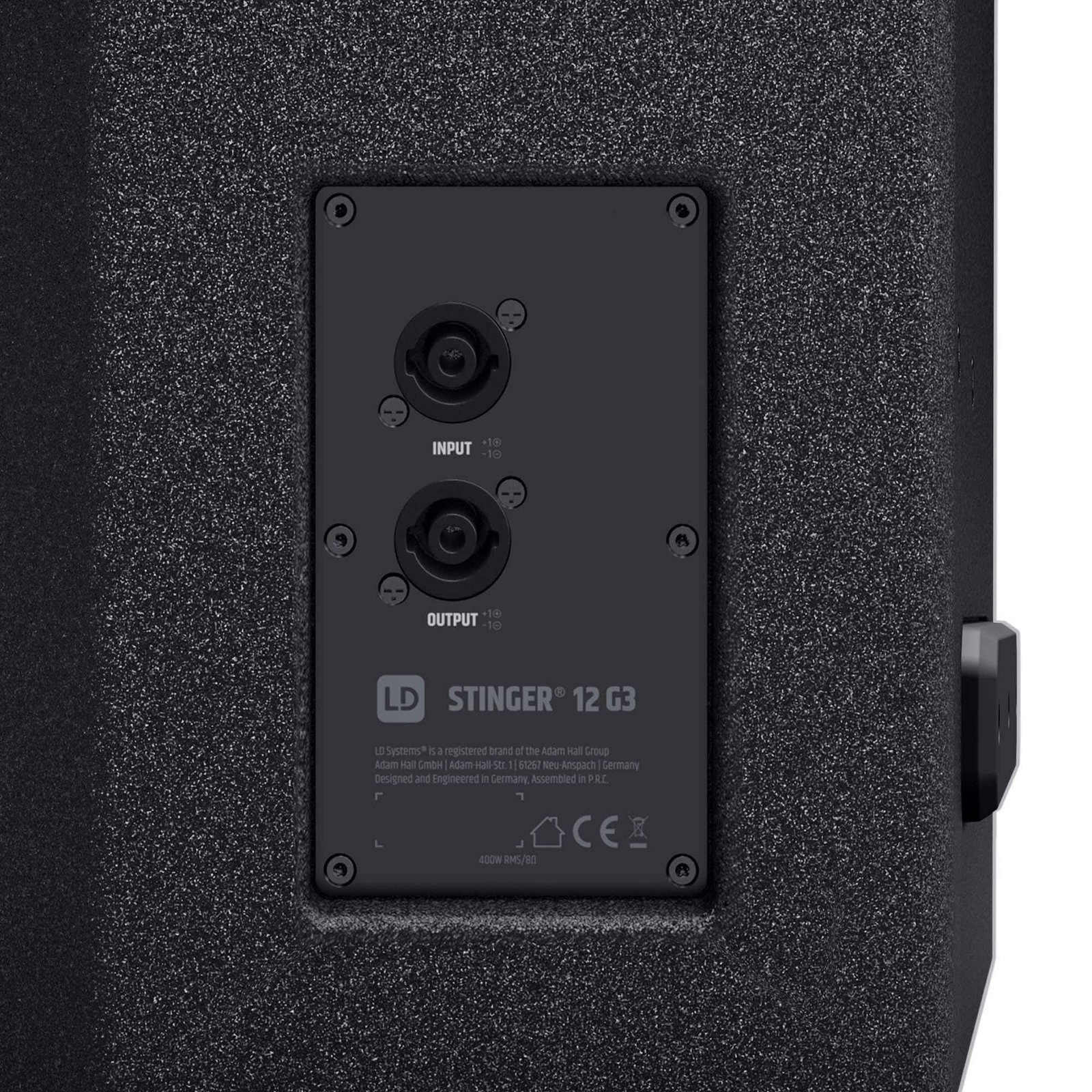 Connectivity options are straightforward and professional-grade, with Speakon-compatible inputs and outputs facilitating secure, reliable connections in multi-speaker setups. The STINGER 12 G3 can be driven with up to three speakers per amplifier channel on compatible LD Systems DSP44 or DSP45 amplifiers, allowing for scalable sound systems tailored to your event’s size and complexity. Additionally, the speaker features protection circuits specifically for the high-frequency driver, providing peace of mind against potential damage from overload.