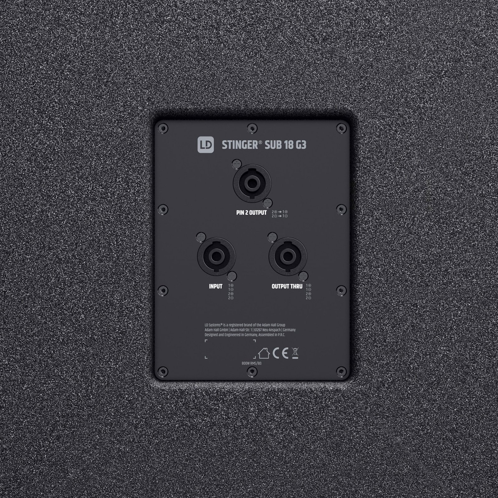 Designed as a real all-round workhorse, the heavily braced bass reflex cabinet is designed for horizontal and vertical use. It is made from robust 18 mm birch plywood and offers exceptional stability and durability thanks to its extremely resilient polyurea coating. The features include a steel front grille, a thread insert for M20 extension tubes, stacking dimples and ergonomic handles. The STINGER® SUB 18 G3 is a good-value and attractive solution for professional sound systems, with extensive accessories that support usage on the stage and in fixed installations.