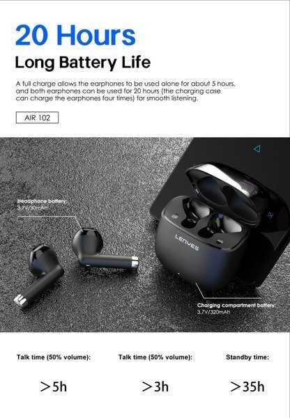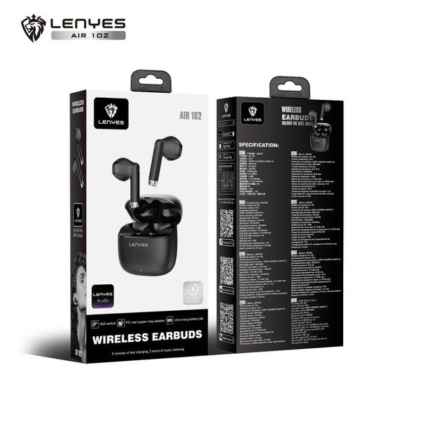 The Lenyes Air 102 true wireless earbuds combine performance, precision, and power for an exceptional audio experience. Powered by the advanced Zhongke 5656A chipset, they offer stable, high-quality Bluetooth transmission with ultra-low latency. Featuring 13mm dynamic drivers, they deliver deep bass, clear mids, and crisp highs for immersive, balanced sound. Each earbud has a 30mAh battery paired with a 320mAh charging case, providing extended playtime, while fast charging offers 2 hours of use from just 5 minutes. The Smart Hall Switch ensures instant auto-pairing as soon as you open the case, and a 10m Bluetooth range maintains a steady connection. With Lenyes Audio App support, users can easily customize sound and controls. Designed for modern listeners, the Air 102 redefines wireless freedom and convenience.