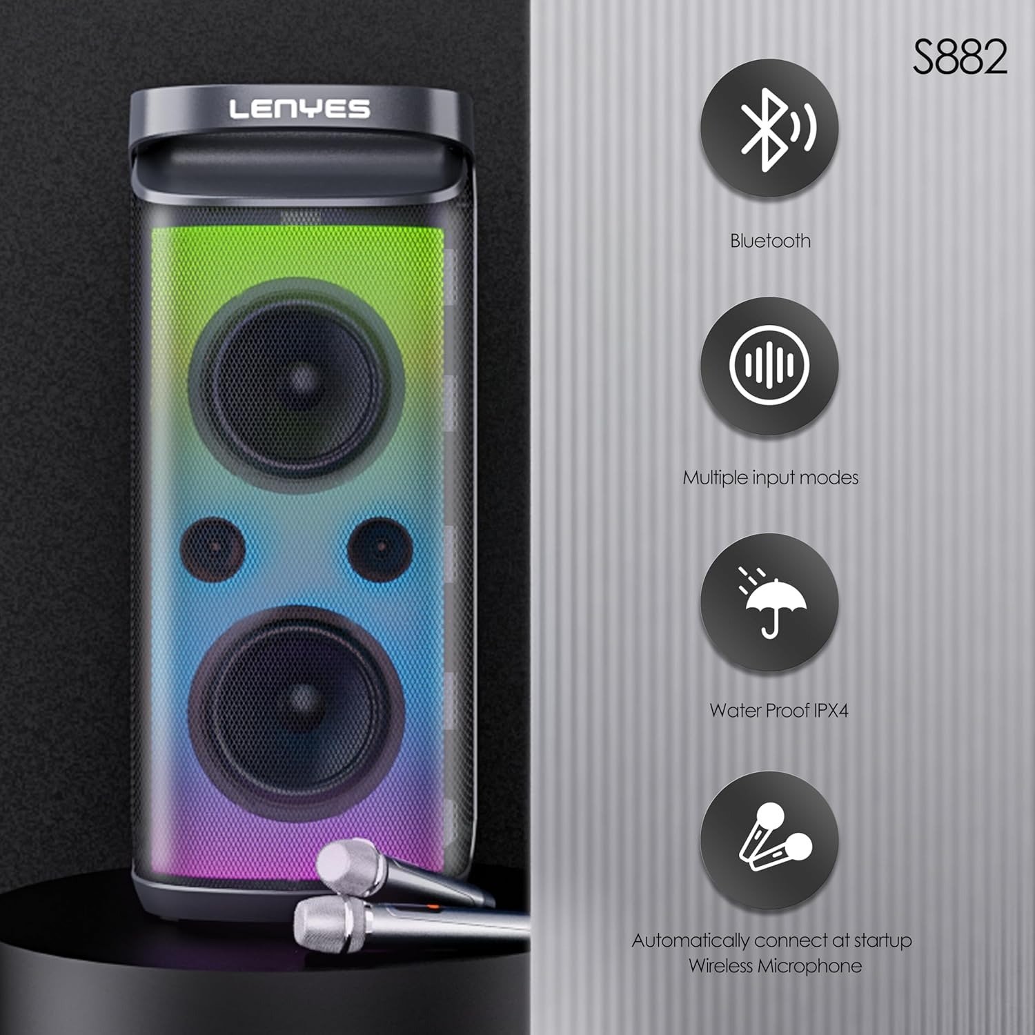 Choose the Lenyes S882 for dependable performance, seamless device compatibility, and a captivating party atmosphere that keeps the energy high and the music flowing.