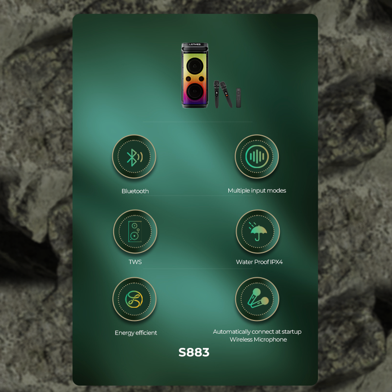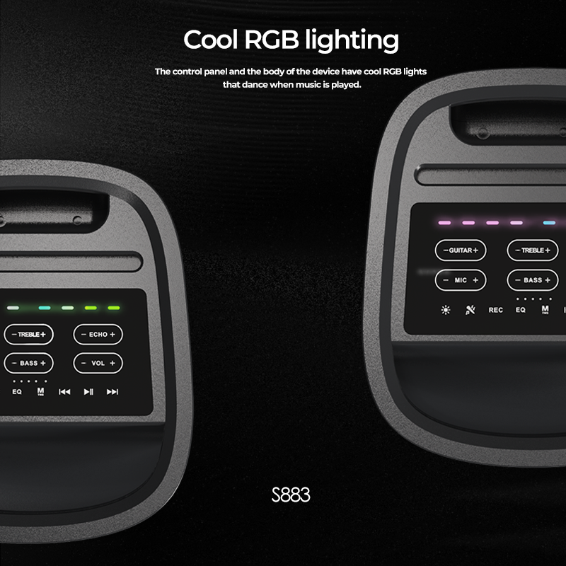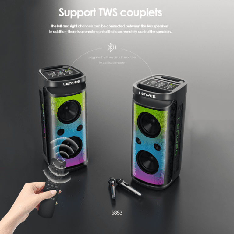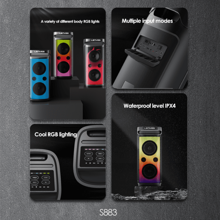 With dimensions optimized for both indoor and outdoor use, the Lenyes S883 balances a sturdy build with manageable size and weight, ensuring durability without sacrificing mobility. The accompanying LED light show enhances visual appeal, synchronizing with your music to intensify the party atmosphere.