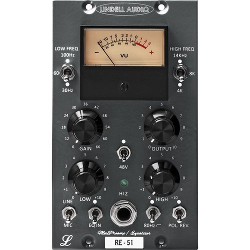 With its combination of vintage-inspired sound, versatile EQ, and comprehensive connectivity, the Lindell Audio RE-51 is a precise tool for engineers seeking warmth, clarity, and control. Its detailed tonal options and professional features make it a standout choice for any recording setup requiring high-fidelity microphone preamplification and EQ.