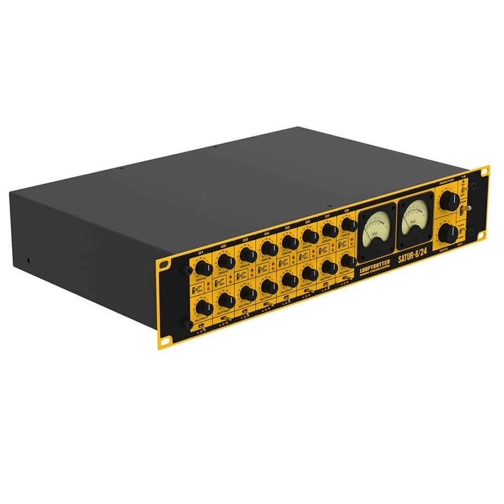 LOOPTROTTER SATUR-8/24 is a unique Discrete Class A, 24 channel summing mixer with 8 channels of analog, solid state saturation modules. The design refers to the sound of old tube mixing consoles and tape recorders from the 1960’s.