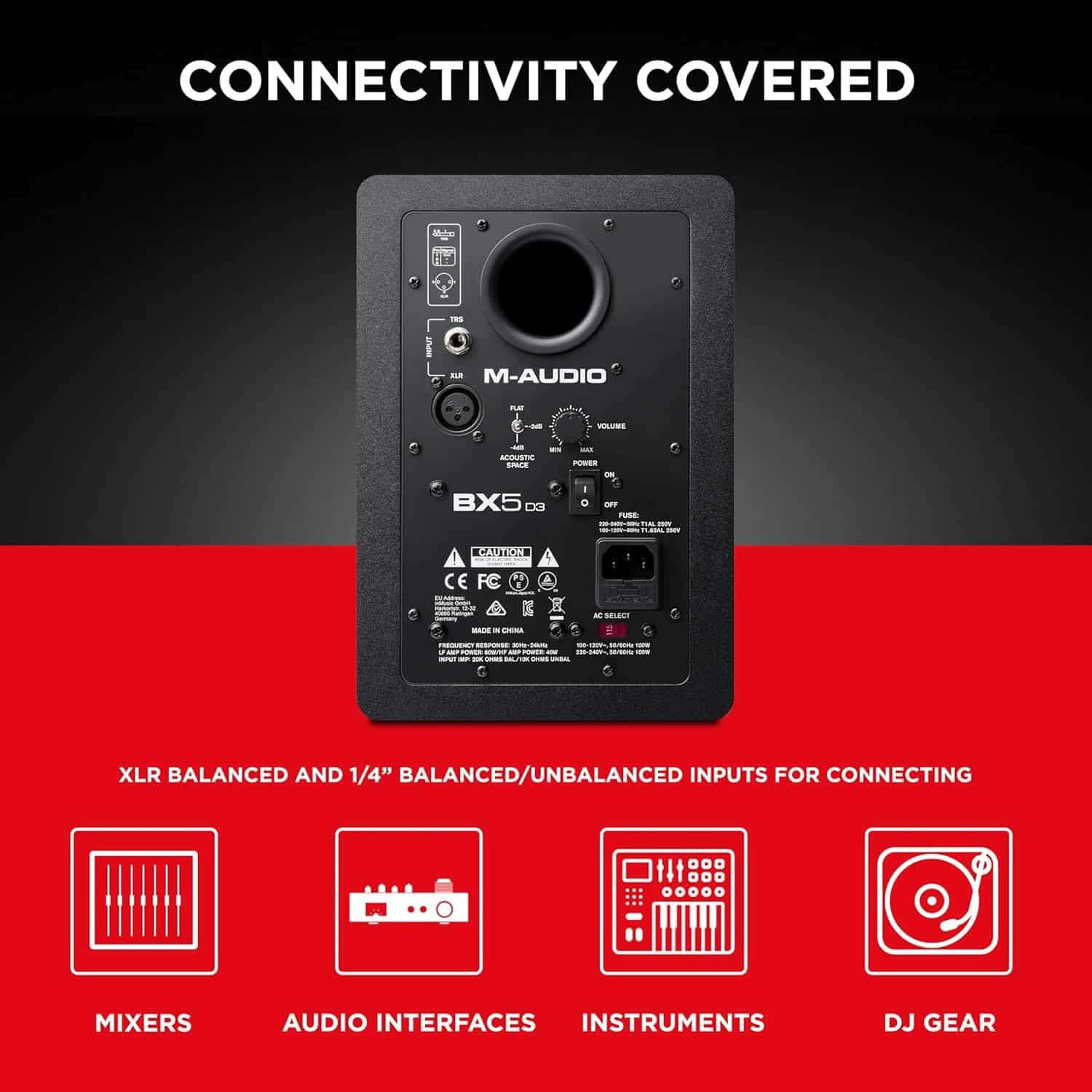 Whatever you needs, the BX5-D3 Studio monitors provides assimilate into your existing setup with ease. Combining conveniently-located, rear-mounted XLR and 1/4-inch balanced inputs, BX5-D3 connects to virtually all studio equipment including mixers, interfaces and more.
