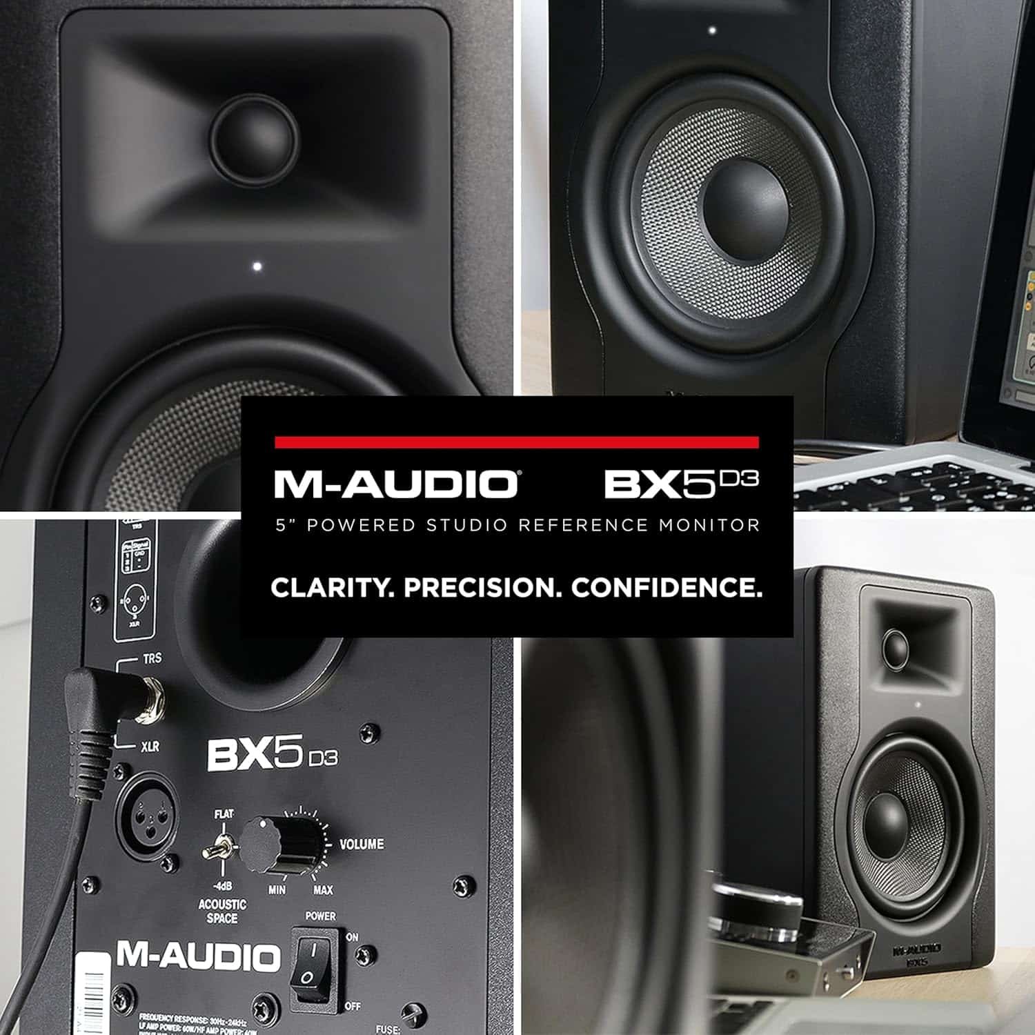 A studio monitor is no ordinary loudspeaker. Unlike a conventional speaker, a true monitor must be unerringly accurate, with a flat frequency response and vanishingly low distortion. It has to tell you, the music producer dependably and unquestionably exactly what is or is not in your recording. Introducing M-Audio’s BX5-D3 monitors—the return of a studio icon and the successor to the industry-renowned BX-D2 monitors. Trusted by recording/mix engineers and composers globally, M-Audio’s BX monitors provide absolute surgical precision and repeatable engineering excellence – with M-Audio’s BX5-D3 studio reference monitors, listen with confidence.
