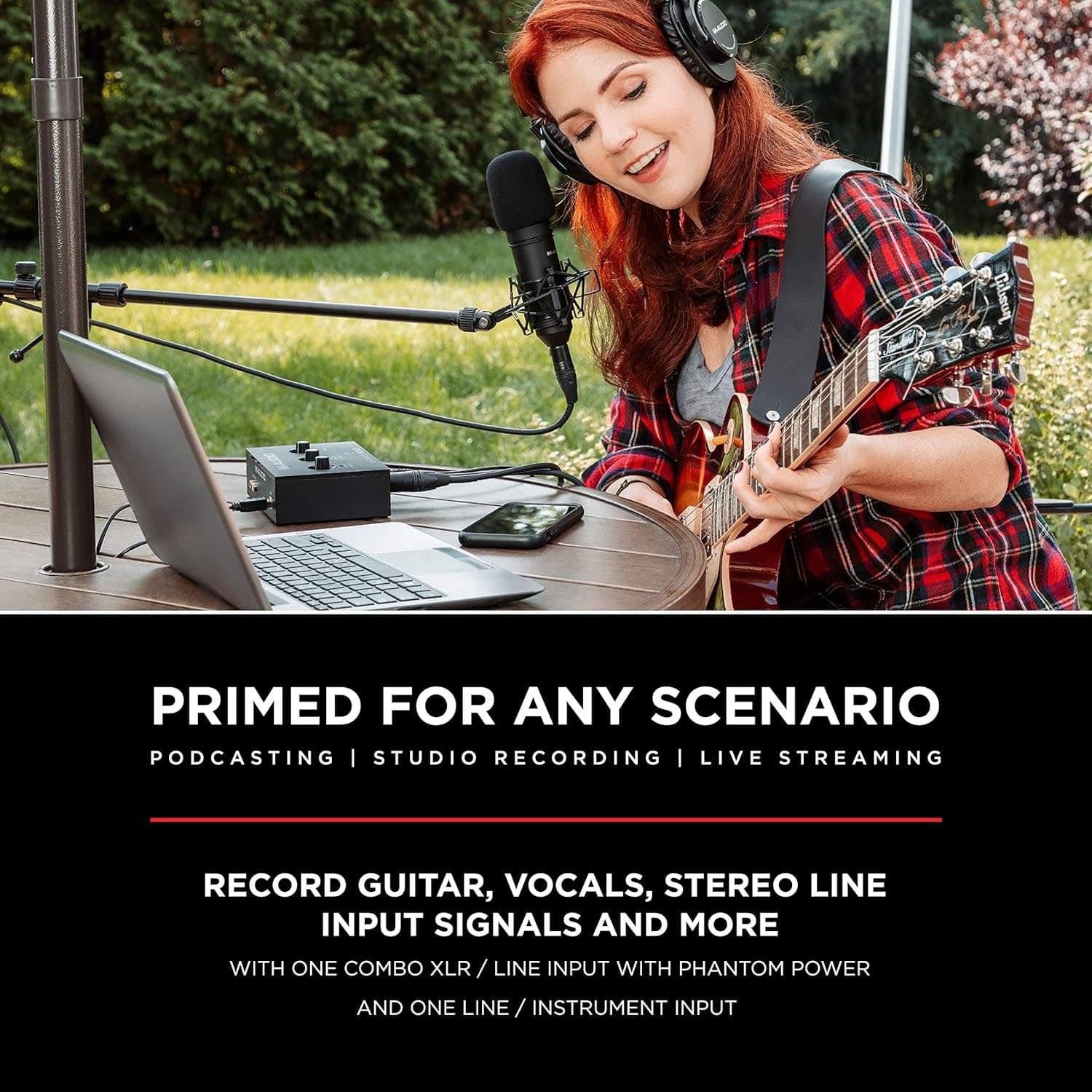 • Podcast, Record, Live Stream, This Portable Audio Interface Covers it All – USB sound card for Mac or PC delivers 48 kHz audio resolution for pristine recording every time
