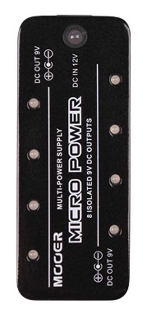Micro Power Supply. 9V DC power supply, each output with a maximum current of 300 mA. Eight independent out put short circuit protection design, when one circuit output fails, other output lines still work independently. 8 LEDs indicating output status in darkness. Its unique dull polished feature also protects you from reflected spotlights on stage.