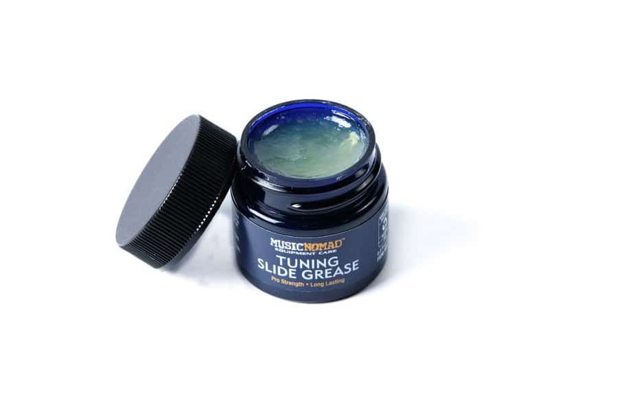 Our premium synthetic tuning slide grease’s pro strength formula is the ideal viscosity to help lubricate all brass slides, including Trumpet, Trombone, French Horn, Tuba, Euphonium & more. Formulated in the USA to the highest standard for optimum long lasting performance in hot & cold environments to ensure your brass instrument plays the best. It contains no silicone or lanolin & is clear and odorless so your instrument always looks the best. Each jar comes with a generous amount of grease (0.5 oz/15mL), so it lasts longer & you buy less. That’s MusicNomad quality – raising the bar in equipment care.