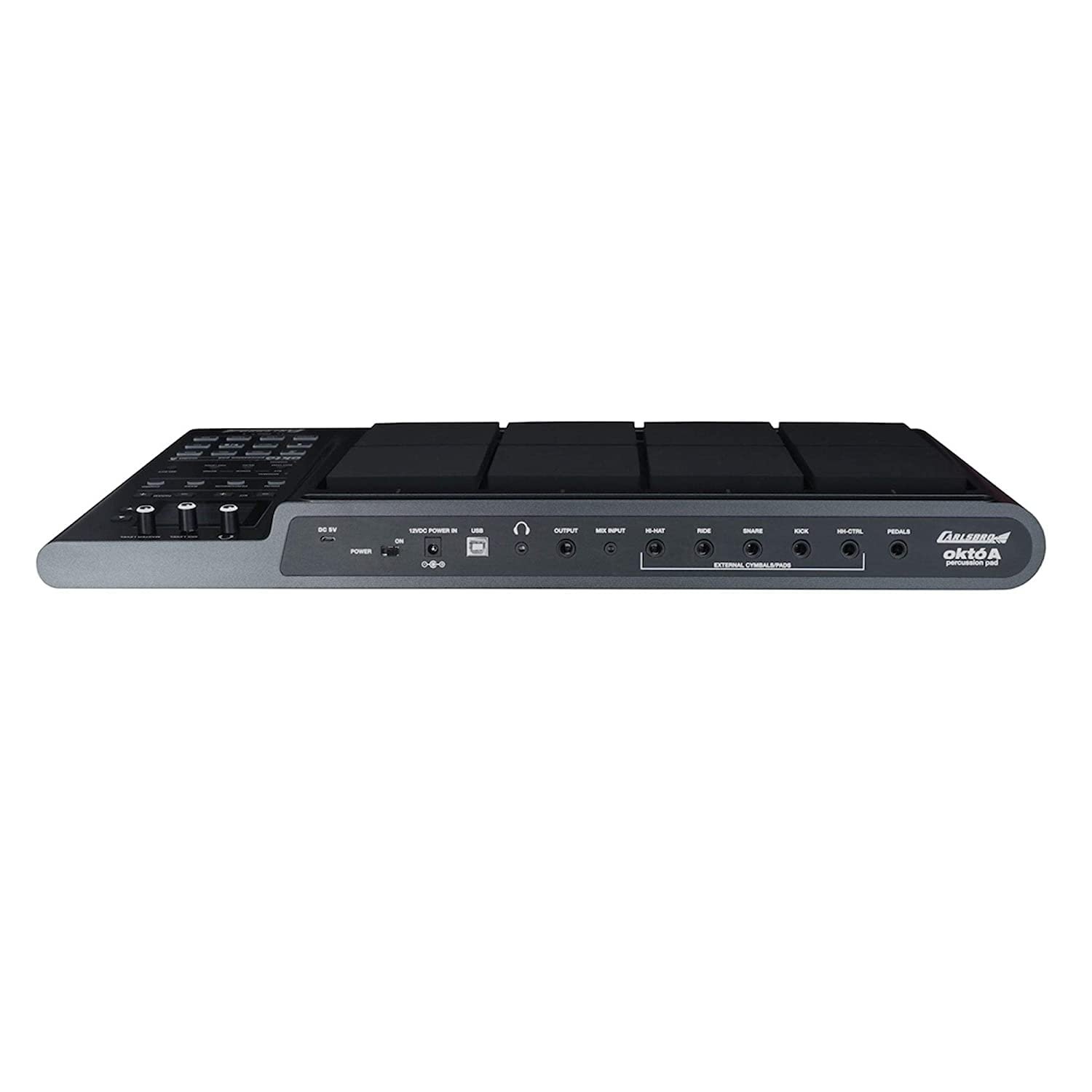 The Okto A percussion pad set features 8 high response, hard wearing, user configurable rubber pads. 2 switch pedals to control bass drum and hi hat. 408 drum voices, 30 preset drum kits, 20 user drum kits. Record, playback, demo and teaching functions including powerful step by step snare, rhythm and complete drum set practice/teaching modes