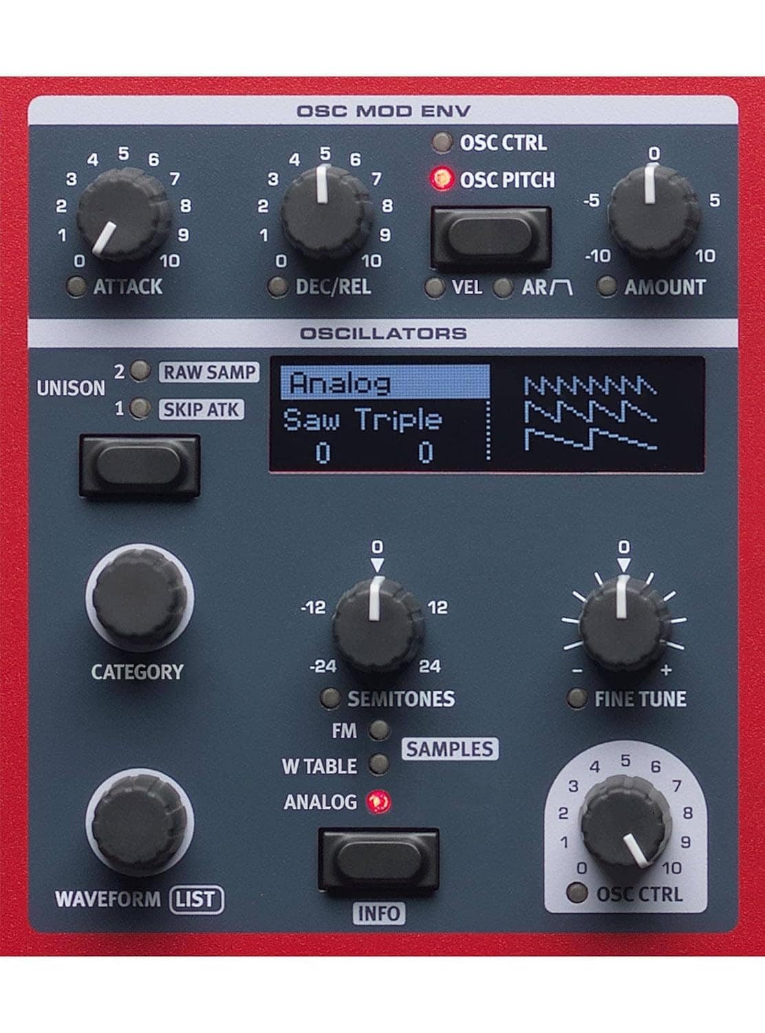 • OLED displays for program and oscillator sections