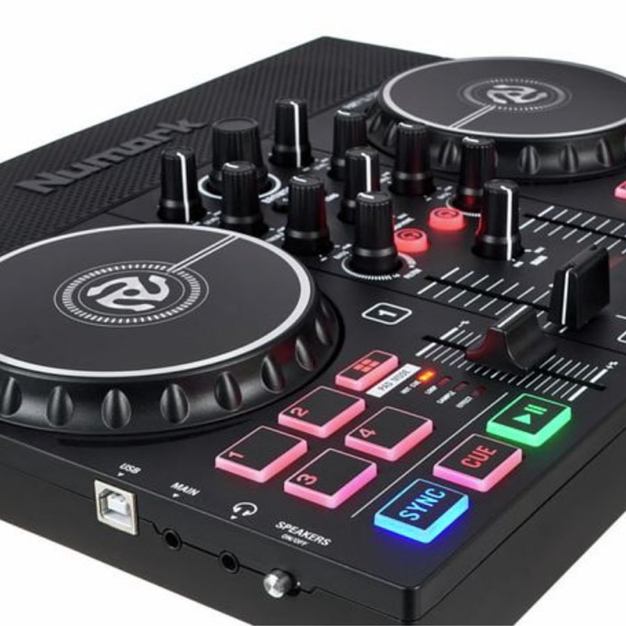 Four performance pads on each deck allow quick access to cue points, loops, effects or samples. In addition to Play and Cue buttons on each deck, Sync buttons allow for the automatic tempo matching of two tracks for perfectly aligned mixes. Dedicated Filter knobs on each deck help add a pro-grade sound to your mixes, and the software-adjustable crossfader allows for sharp cuts for scratches or long, smooth fades for mixes.