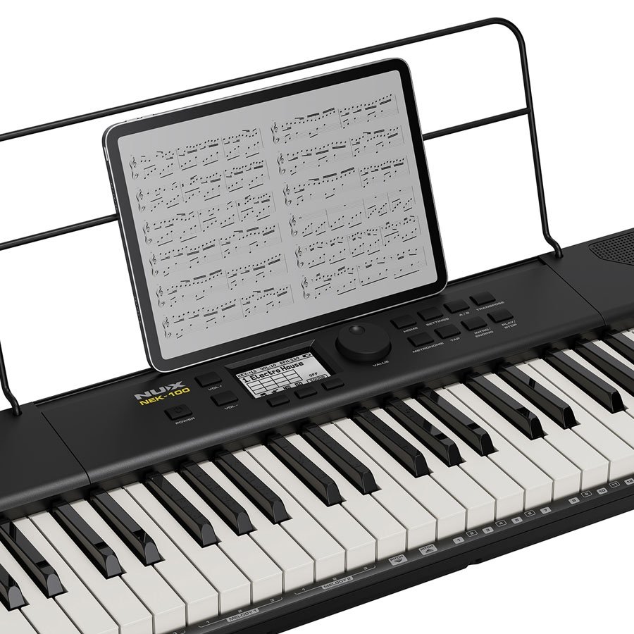 Control layout is simple and intuitive, providing quick access to all functions, with options for transpose, split or layered keyboard, touch response, pitch bend, and Bluetooth connections. The NUX NEK-100 hides a full arsenal of player options in a very portable and convenient package.