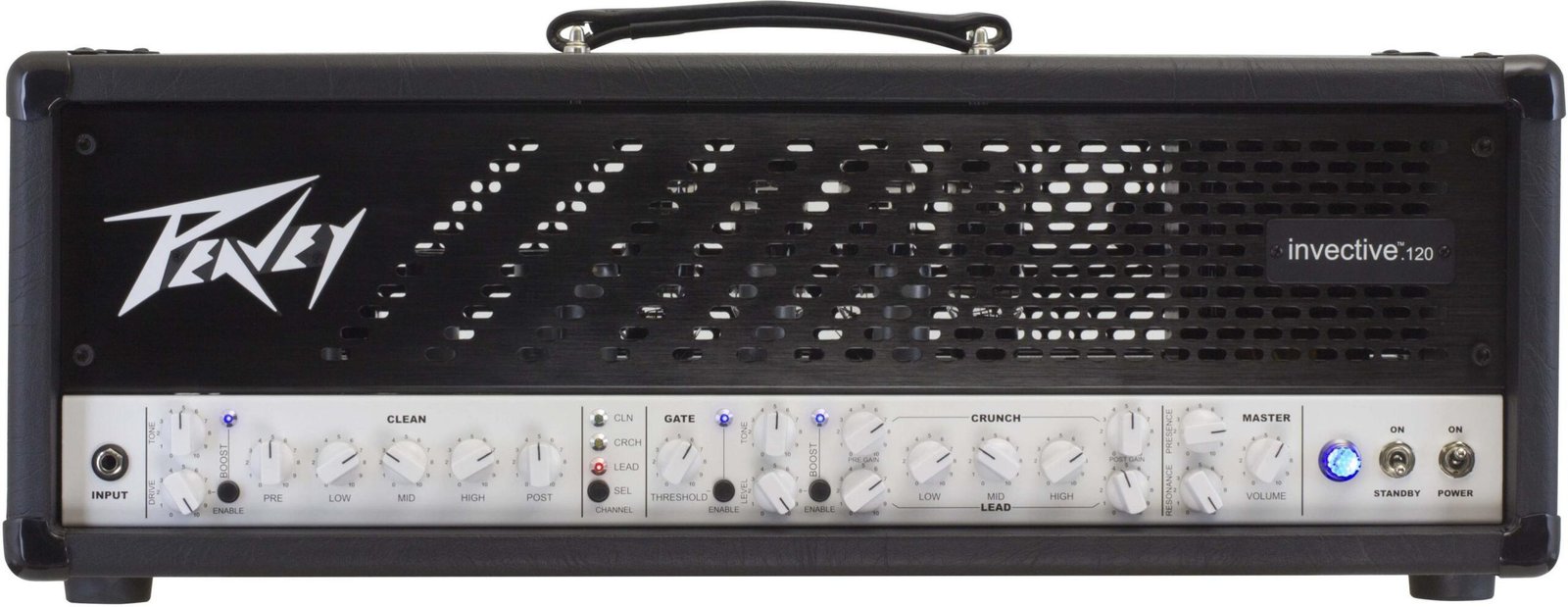 The flagship Peavey invective®.120 is the premier high-gain amp for guitar players who appreciate the sound and versatility of a pristine clean channel. Built on the high-quality legacy of the legendary 6505 Series, the all-tube invective®.120’s endless feature set allows you to dial in the perfect tone. From extreme high-gain metal roar, to flawless classic rock overdrive, to deep clean country or jazz tones – this versatile tube amp is perfect for players of all kinds.