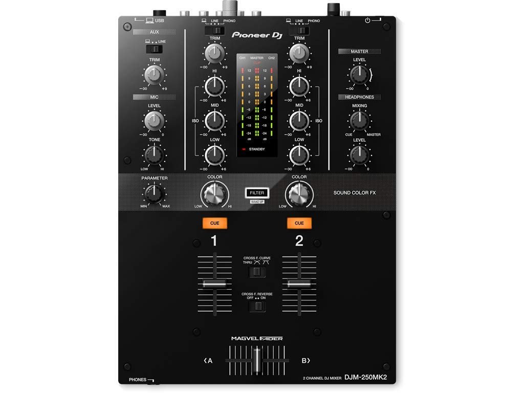 The DJM-250MK2 has inherited some of the professional features of the popular DJM-900NXS2, such as the Magvel crossfader and Sound Color FX filter. Straightforward controls, a clear layout, and dedicated 3-band isolators let you scratch and mix instinctively.