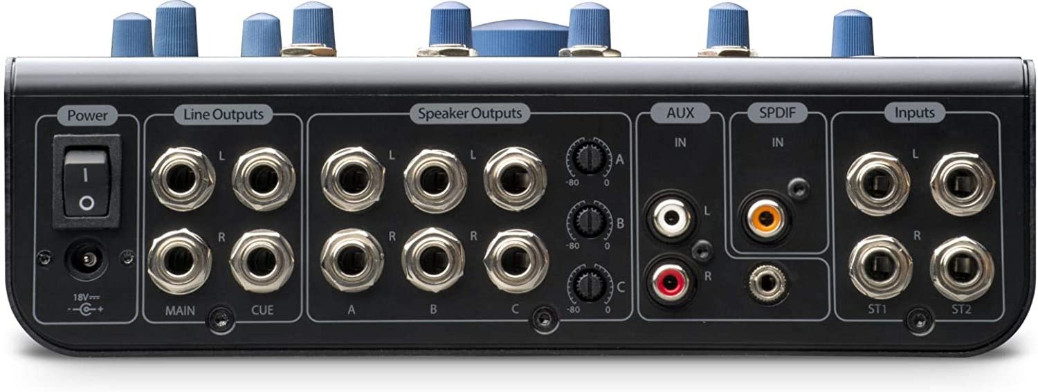 - 3 Stereo pairs of ¼-inch TRS speaker outputs with level controls