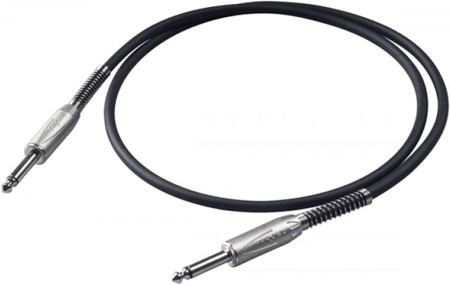 Proel Cable Model Bulk100lu3 for instrument. 1/4 jack connectors. 3 me tros. Nickel silver metal housing.