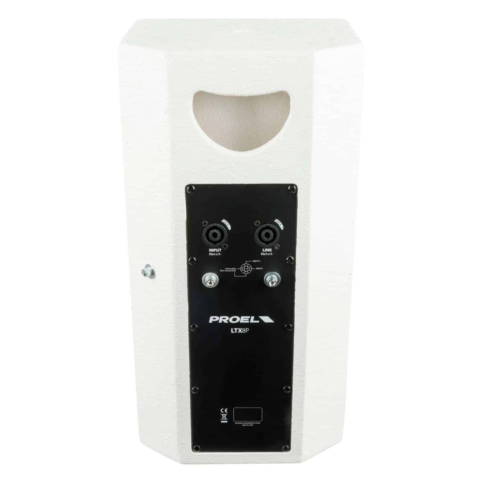 1″ neodymium dome tweeter – 8” woofer – 90° H x 90° V – 320 W program power – 70 Hz – 20 kHz frequency response – Max Spl 121 dB – wall mount bracket included – White color