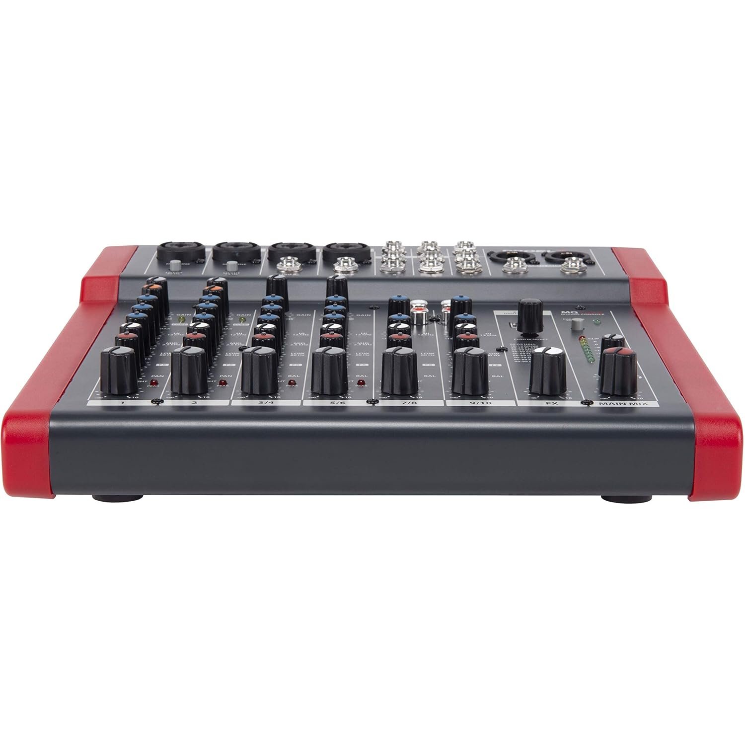 MQ is a series of mixers created by PROEL to offer in a very compact and stylish package a high input density, a full set of features and a superior audio quality, at a very convenient price point. The MQ series includes 5 models with 6, 10, 12 and 16 inputs, able to satisfy most of the sound reinforcement applications. Carefully designed and engineered in Italy by PROEL R&D, MQ mixers are hosted in ultra-rugged cases, providing extended durability for a stage-proof use. The smallest models of the series, MQ6 and MQ6FX, offer in an ultra-compact format the performance of professional consoles, delivering a clean and accurate sound. The MQ6FX, despite its small size, includes a high-quality 24-bit DSP able to provide musicians and performers with studio-grade effects. MQ10FX, together with 3-band EQ and one-knob intelligent COMPRESSORS, offers also 100 DSP presets with a convenient LED display for the selection. MQ12USB additional features include an USB audio I/O interface and extended mixing capability with MONITOR send, STEREO GROUP bus and 45mm control faders. The top-of-the-line MQ16USB feature 16 inputs and 12 microphone channels together with sweep mids and one-knob intelligent COMPRESSORS on mono channels, 4 AUX sends, STEREO GROUP bus and 60mm control faders. Optional padded carrying bags and metal brackets for 19” rack mounting are available for selected models.