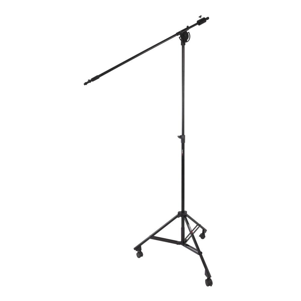 Professional large dimension microphone stand with telescopic boom large and Ø 50 mm swivel castors with brake
