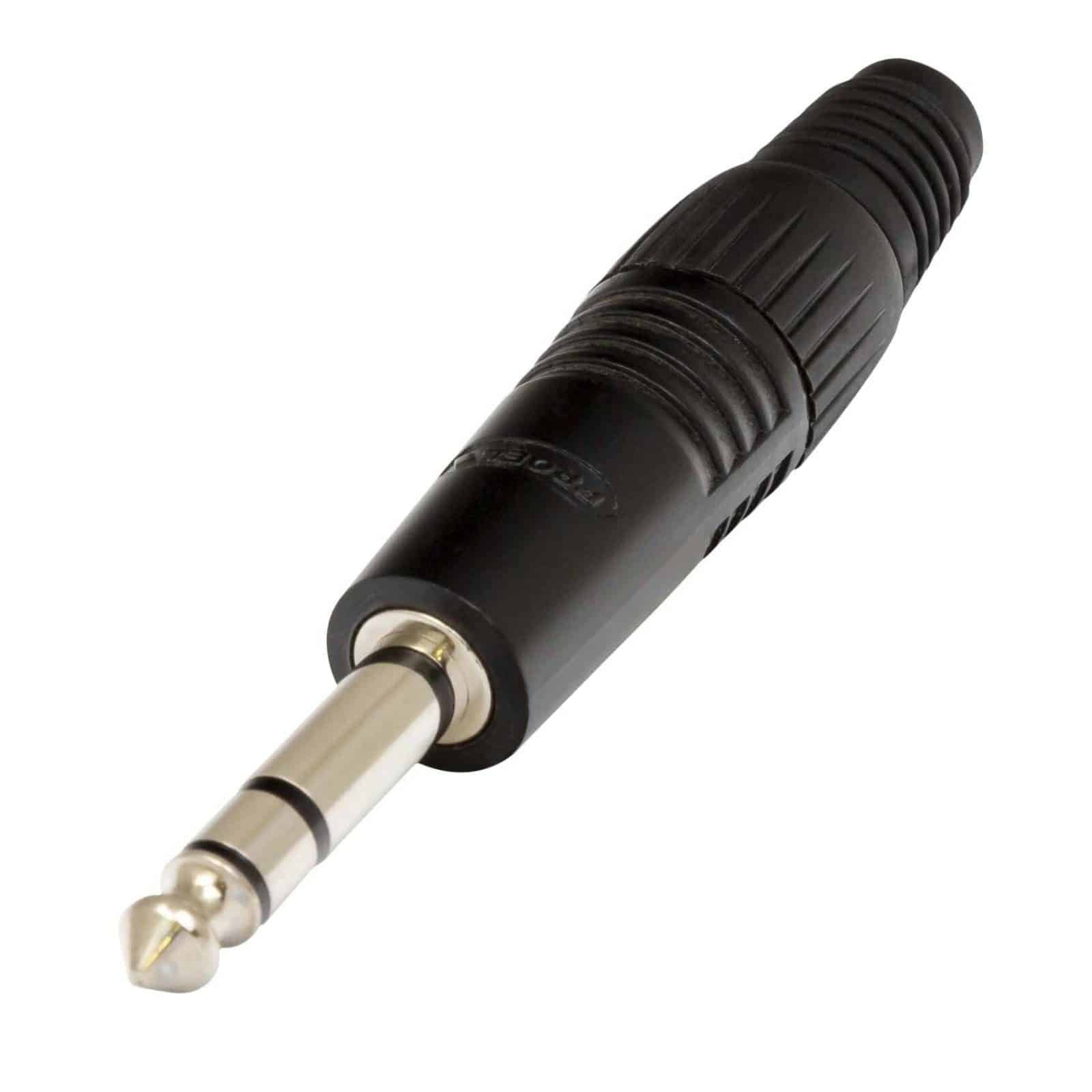 Professional 6,3 mm – 1/4” stereo jack plug. Colour: Black with black ring.