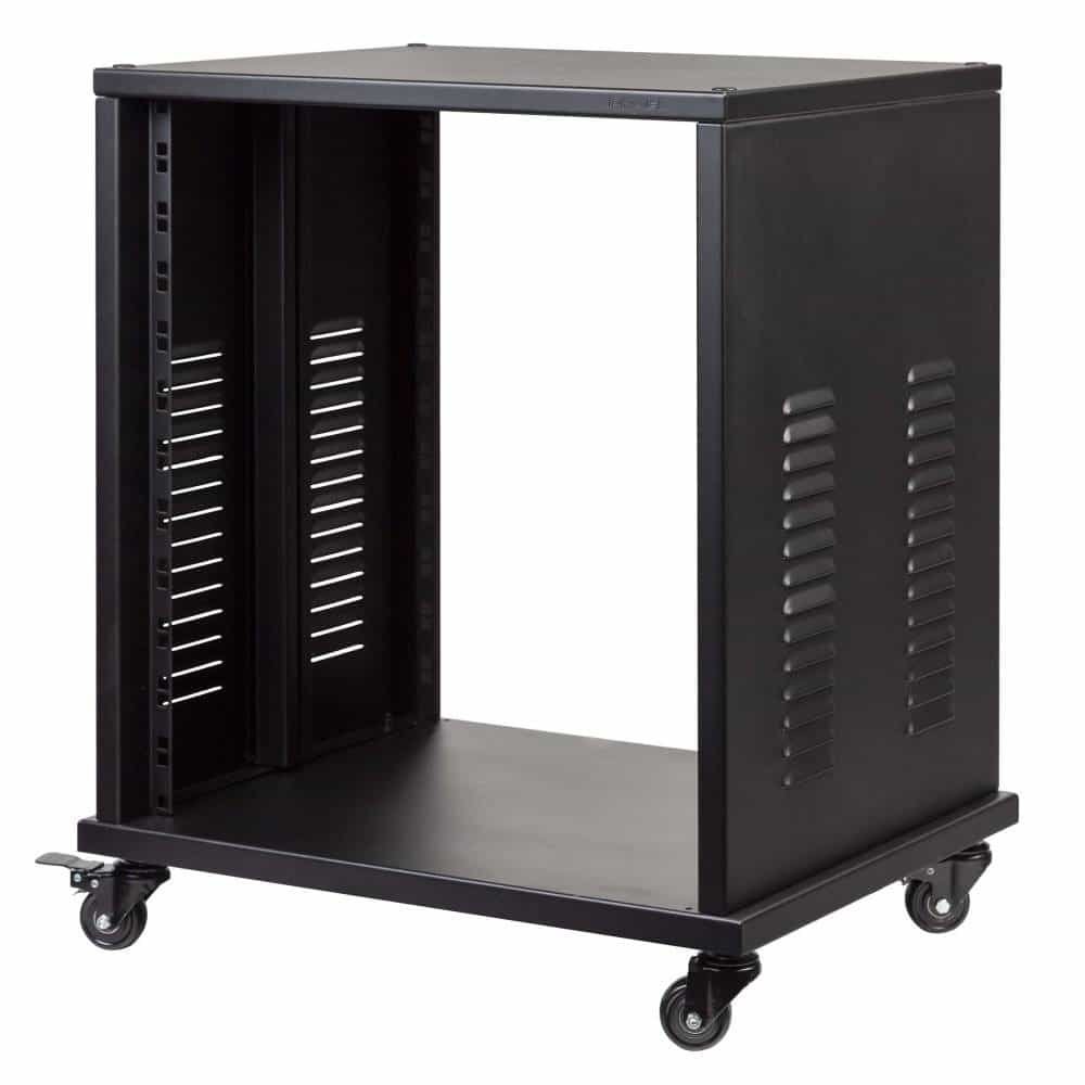Professional steel construction standard 19” – 12U – rack stand.Featuring 4 swivel casters and 4 adjustable fixed feet. 375 mm rackable depth. Ideal for stage, recording studios or home applications.