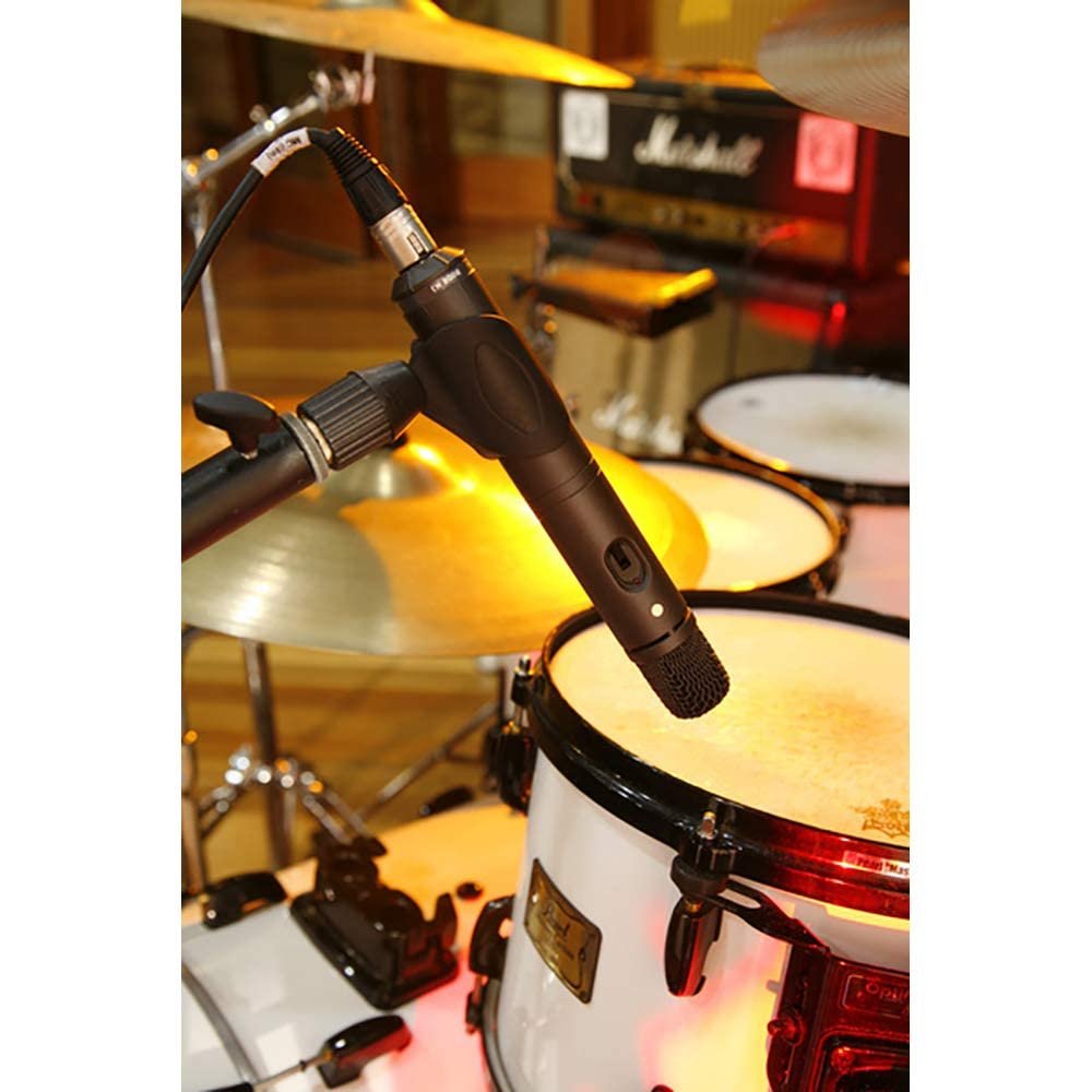 Featuring a heavy duty metal body and internally shock mounted 1/2 inch condenser capsule mounted for end-address, the M3 can be powered either via P48 phantom power, or an internal 9V battery.